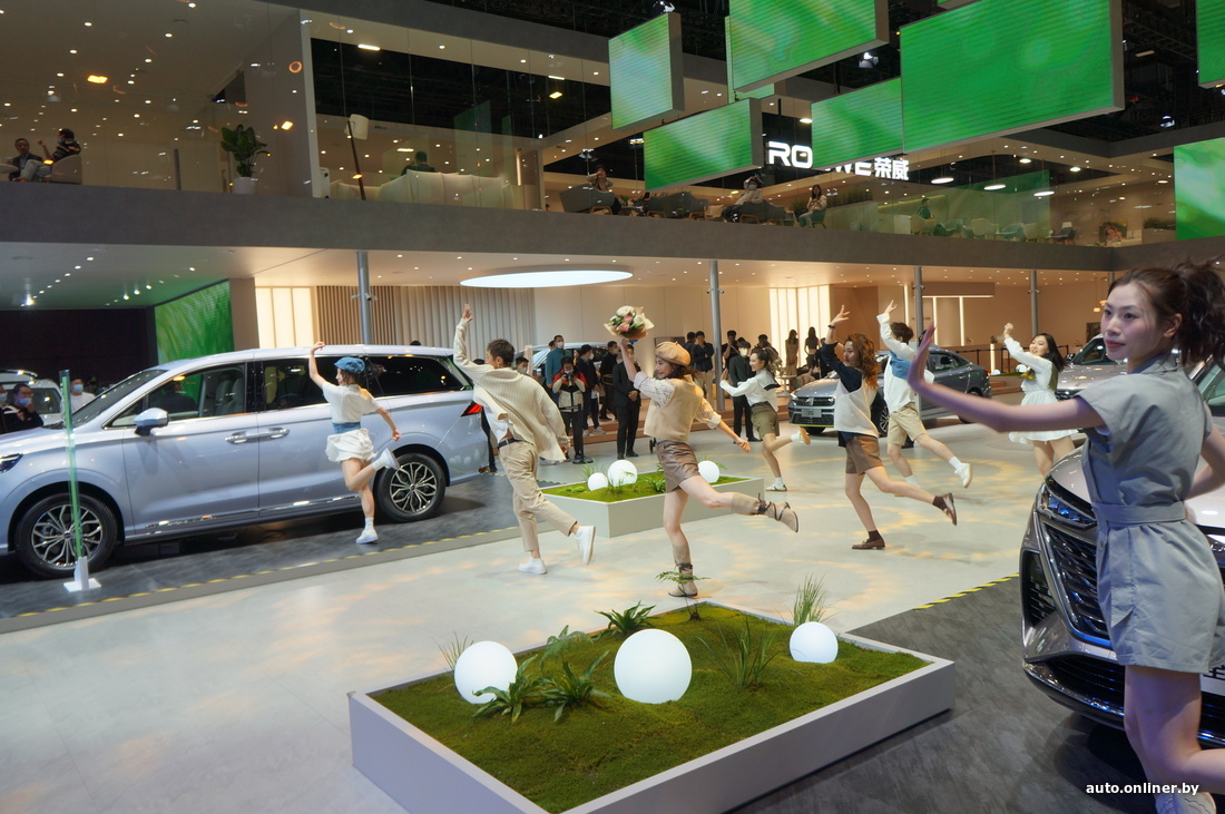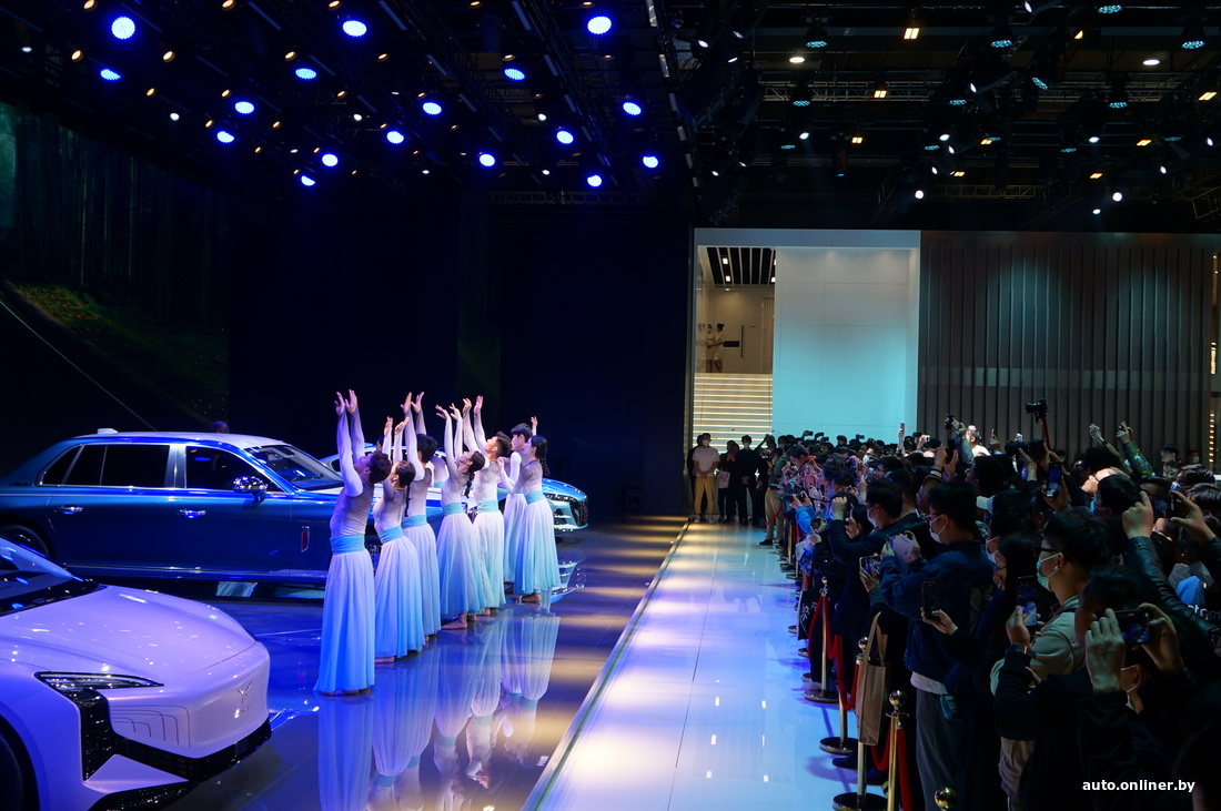 Главным движем у стендов были танцы. Как выяснилось, в КНР очень любят синхронную хореографию. Стоило только зазвучать первым аккордам композиции — все посетители сразу сбегались посмотреть на шоу. Бренды помоложе приглашали танцоров в стиле hip-hop, а те, что посолиднее — например, выпускающие правительственные лимузины Hongqi, — не постеснялись замахнуться на балет.