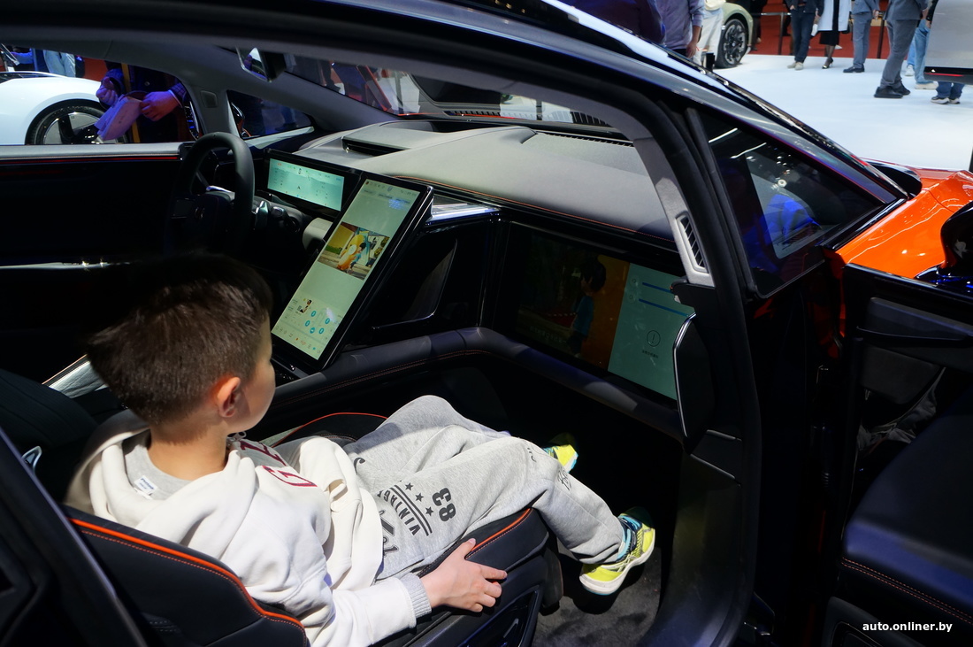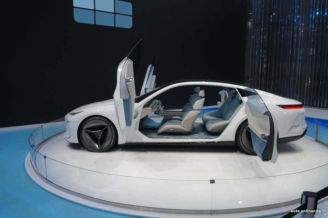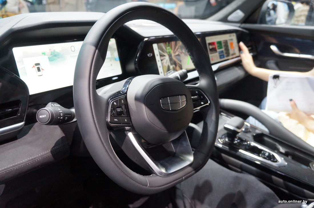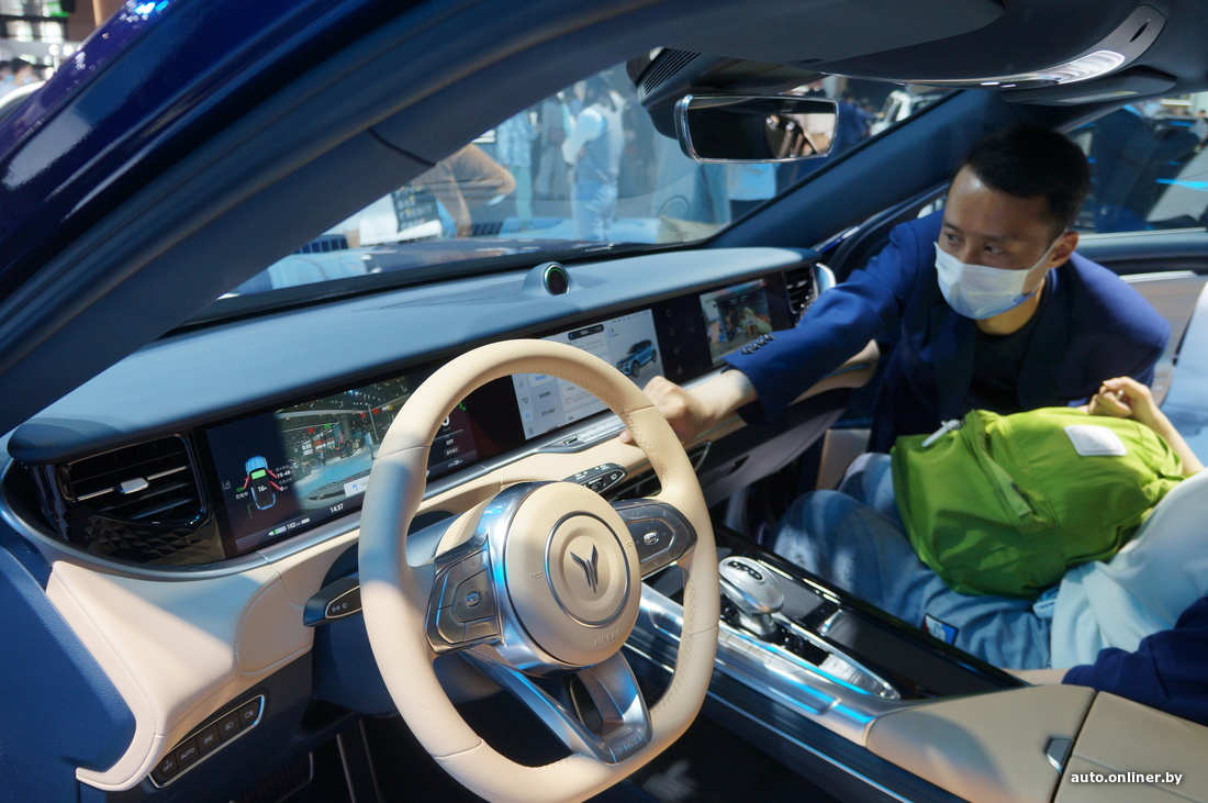 Для начала стоит сказать, что на стенде компании нельзя было найти ни одной машины, которые продаются в нашей стране. Представитель Geely дал нам четко понять: «Emgrand, Atlas, Coolray, Tugella, Monjaro, Okavango — это для экспорта. Зато посмотрите, какую красоту мы продаем здесь для своих!»