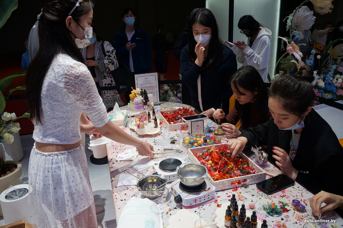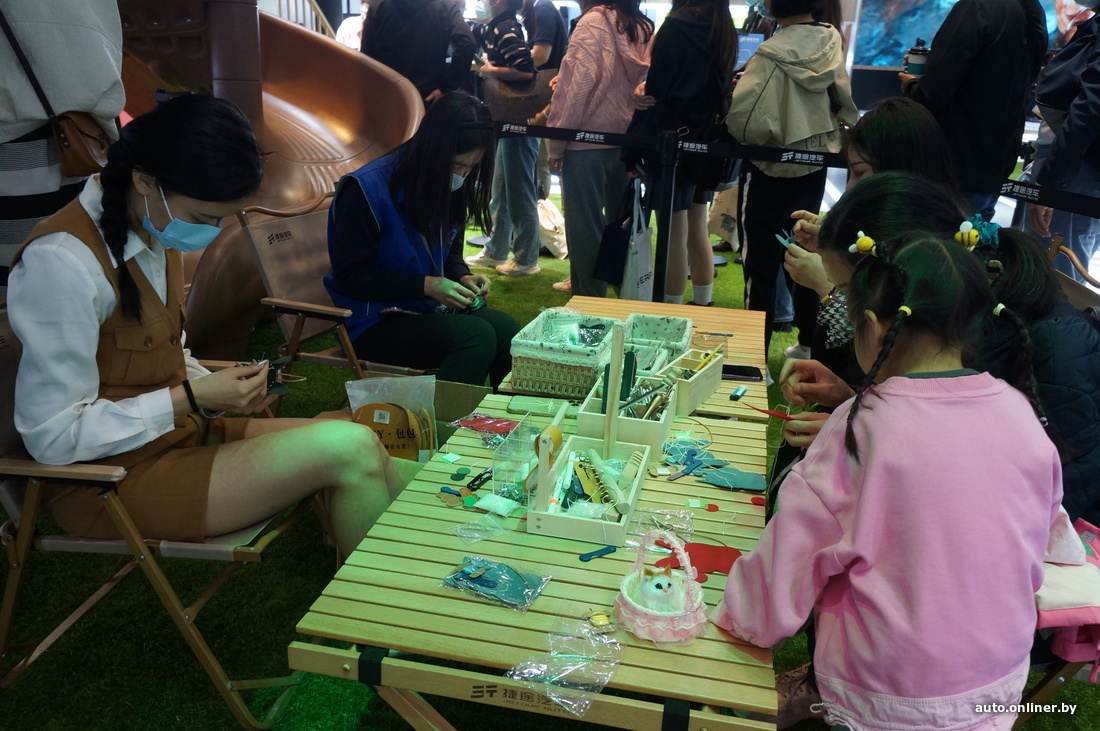 Что примечательно, отдельные производители предусмотрели зоны для детских игр и поделок. Но на этом не остановились: подобные островки обустроили и специально для женщин (Geely, например, предлагала делать композиции из кактусов), чтобы дамы могли что-то смастерить, склеить или даже сшить, пока джентльмены рассматривают машинки.