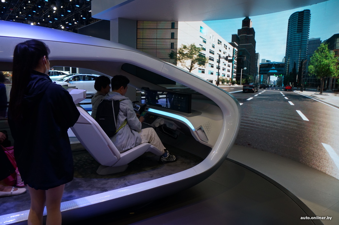 Правда, не все стенды были доступны для детального рассмотрения и фотографирования. Целое крыло выставочного комплекса было посвящено инновационным разработкам. Некоторые из них показывали исключительно за занавесом и только после прохождения регистрации по Face-ID. Что презентовали? От новых материалов для кузовов до специальных фонарей и фар, от систем замены батарей до разработок в сфере электромоторов, от устройств по распознаванию эмоций на лице водителя до готовых автопилотируемых моделей. Как уже было сказано, разрешали фотографировать далеко не все.