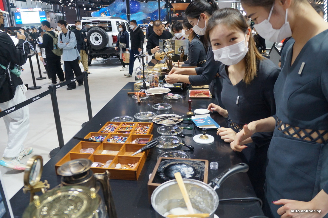 Особое развлечение для посетителей подобных выставок — ходить от стенда к стенду в поисках призов. И если на минском «Моторшоу» раздавали в основном листовки, блокноты и ручки, то в Шанхае можно было выиграть намного более ценные вещи. Практически каждый бренд устраивал какой-либо квест на своем павильоне. В финале ждал сюрприз. Судя по очередям, до финиша в этом испытании доходили многие.