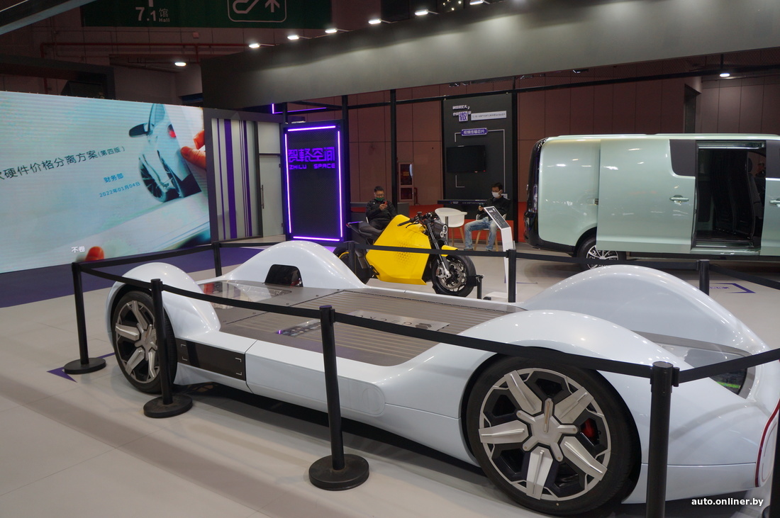Если в 2020-м было продано 33 457 машины Li Auto, то в 2022-м уже 133 246. И компания дала четко понять, что собирается расти. Заявлено, что в течение следующей пары лет автомобильный бренд выпустит пять моделей. На выставке можно было посмотреть на Li L7, L8 и L9. Последнюю модель — последовательный гибрид с двумя электродвигателями суммарной мощностью 449 л. с., питающимися от батареи в 44,5 кВт·ч, — в РБ продают за эквивалент $75 000. Запас хода исключительно на электротяге — до 215 км.
