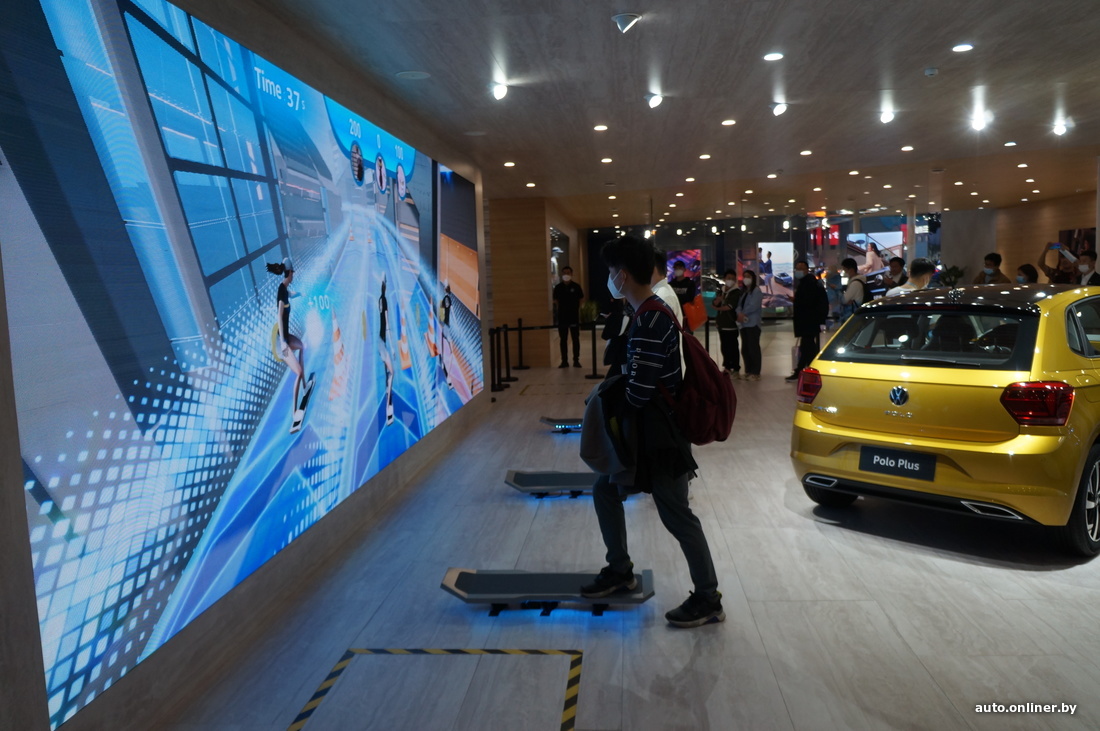 Здесь нужно сфотографироваться, тут — подписаться на аккаунт с новостями в WeChat или собрать пазл, там — потанцевать, пройти игру в VR-шлеме или погонять по трассе с помощью симулятора.