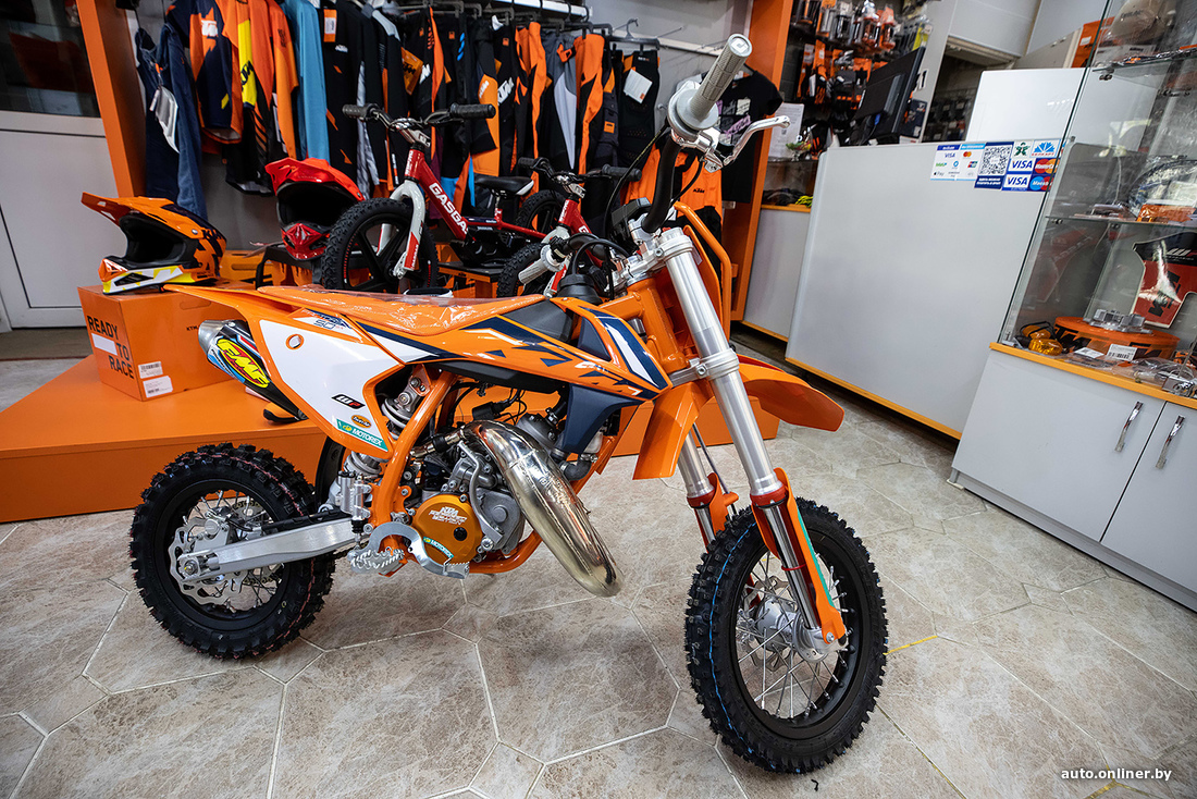 Компанию KTM называют одним из крупнейших и наиболее известных производителей спортивных мотоциклов в Европе. Белорусский поставщик заказывает байки у завода за год до начала сезона. Так что и в этот наш визит все мотоциклы были максимально свежие — 2023 г. в.