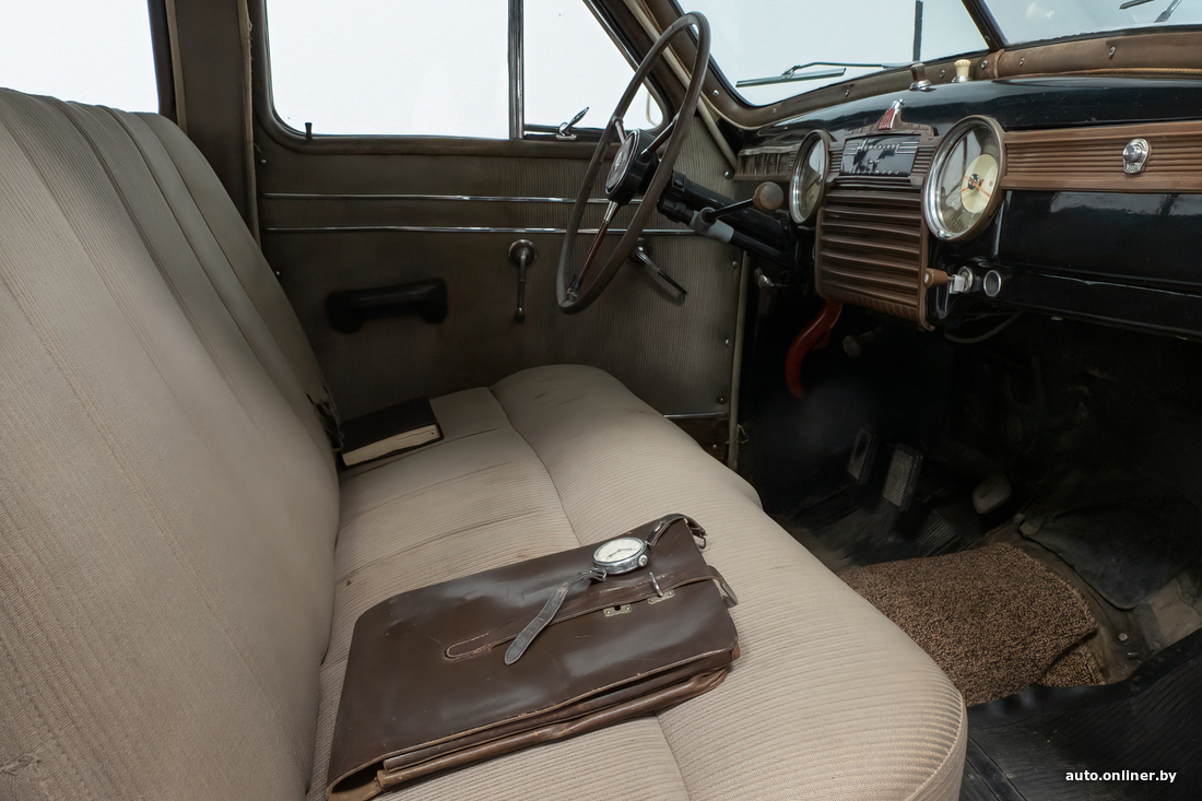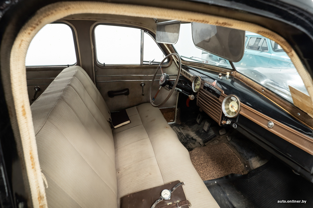 Поэтому ее берегли, аккуратно хранили в аутентичном состоянии: как снаружи, так и внутри. Тогда, в конце 90-х, события развивались стремительно. Как только авто появилось в продаже, появилось сразу несколько желающих, в том числе из России. Стоял вопрос, кто успеет первым. Мне удалось. Отдал за нее больше 8 тысяч долларов, когда однокомнатная квартира в Минске стоила 15 тысяч. Все детали и даже салон здесь оригинальные, с конца 40-х. Не все пластиковые и тряпичные элементы сохранились хорошо, некоторые потеряли эстетичный вид, однако заменить их я не решился. Хотел оставить авто в первозданном состоянии».