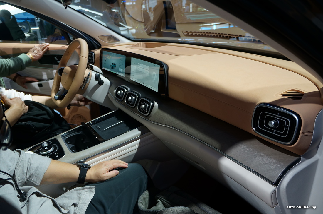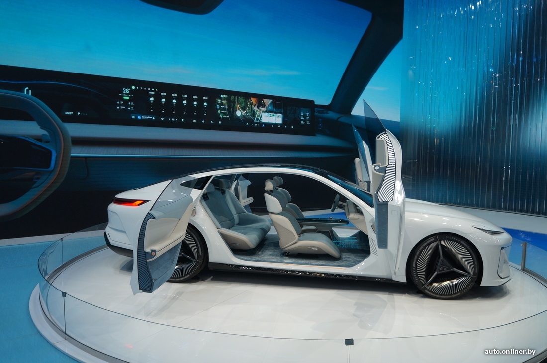 По соседству на стенде Chery можно было заметить концепт гибридного седана Arrizo Star. Обещают, что на одной зарядке он сможет проехать 1500 км, а восполнить 80% заряда можно будет за 15 минут. Заявленный расход — 3,8 литра. Разгон до сотни — 3 секунды. Чуть дальше стоял электромобиль EQ7 с запасом хода в 500 км и зарядкой до 80% всего за 30 минут.