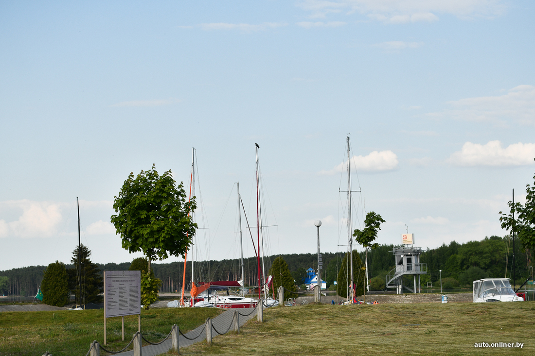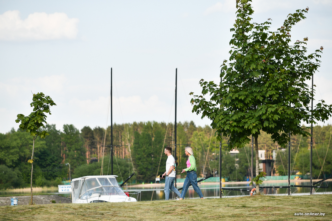 Проехав еще несколько пляжей, вы окажетесь у ворот парусной федерации. Это своего рода яхт-клуб, где в небольшой марине — гавани для яхт — пришвартованы прекрасные суда. Водные прогулки по Минскому морю — это отдельный вид программы, и вы вполне можете организовать что-то подобное. Но даже если не собираетесь менять велосипед на яхту прямо сейчас, в яхт-клуб заехать стоит. Вход, правда, платный — по 2 рубля с человека, а велосипеды попросят оставить на парковке и идти дальше пешком.