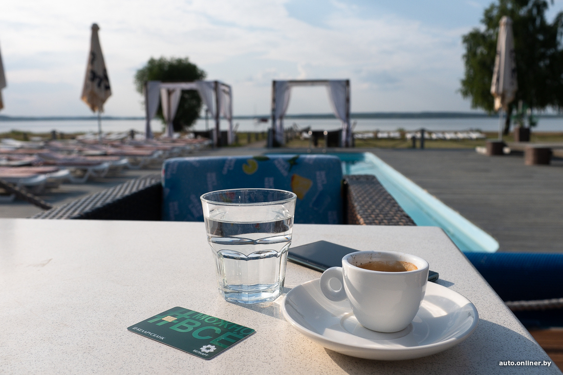Но там, у причалов, расположилось симпатичное кафе со столиками и шезлонгами у бассейна. Очень подходящее место, чтобы выпить кофе или снова немного перекусить. Не переживайте на этот счет: велосипед тем и хорош, что есть вкусняшки можно без последствий — крутите педали и радуйтесь жизни.