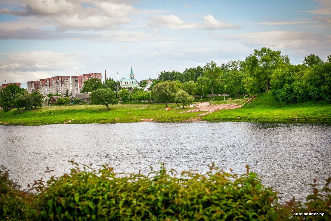 Вдоль реки ведет проселочная дорога, которой наверняка пользуются не часто. Она тянется до городского тенистого парка, очень симпатичного и по-настоящему притягательного в жаркий летний день. Но вы нескоро туда доберетесь. С этой мало чем примечательной дороги открываются, возможно, лучшие виды на старый Полоцк. Говорят, по весне река разлилась так сильно, что едва не затопила этот путь. Такого паводка даже старожилы с ходу не упомнят.