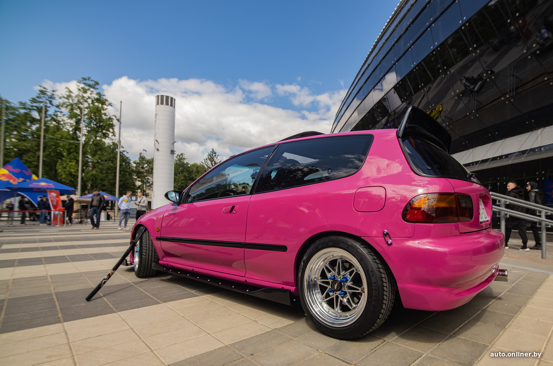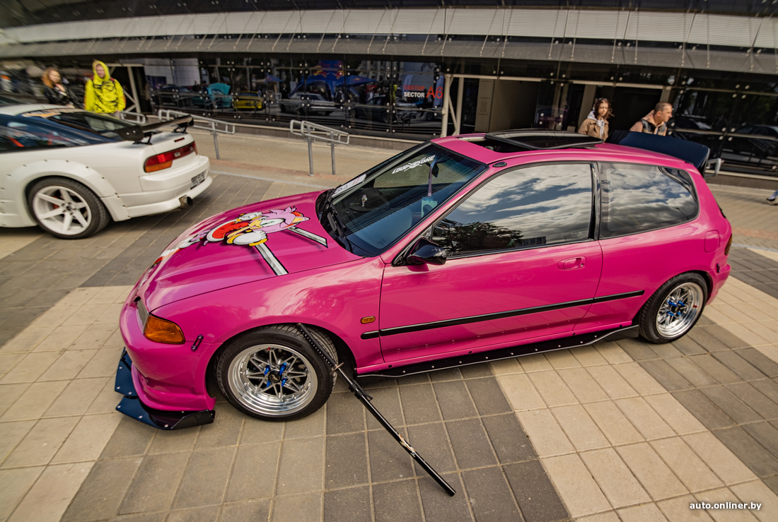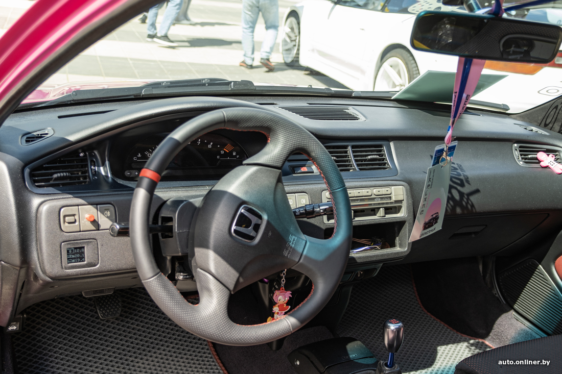 На «Цивике» красуются номера японского формата, однако они лишь часть образа. Авто, как и полагается, стоит на учете и имеет белорусский техпаспорт.