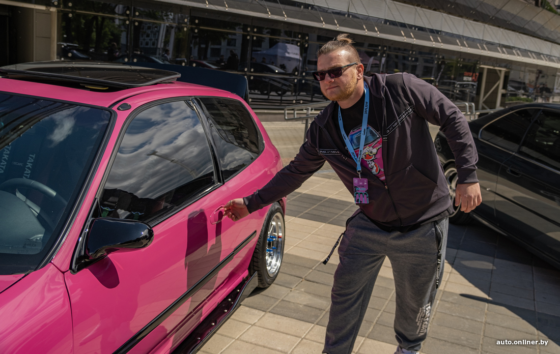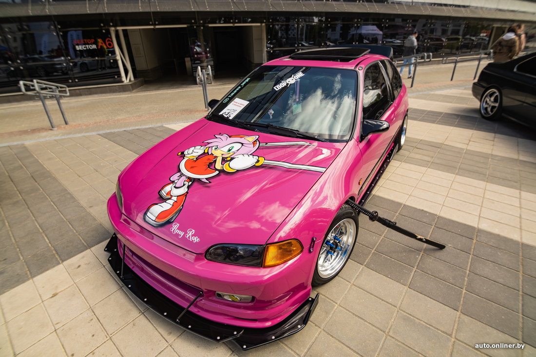 «Этих ваших Honda Civic — в каждом дворе, чему удивляться?» — сказали бы мы, если бы не увидели все доработки этой Amy Rose (так зовут «девушку» мультяшного ежа Соника) вживую. Как вы думаете, кто владелец розовой милашки? Ни за что не угадаете — вот этот брутальный и бородатый парень по имени Сергей. А на нем — мерч собственного автомобиля, изготовленный в подарок друзьями.