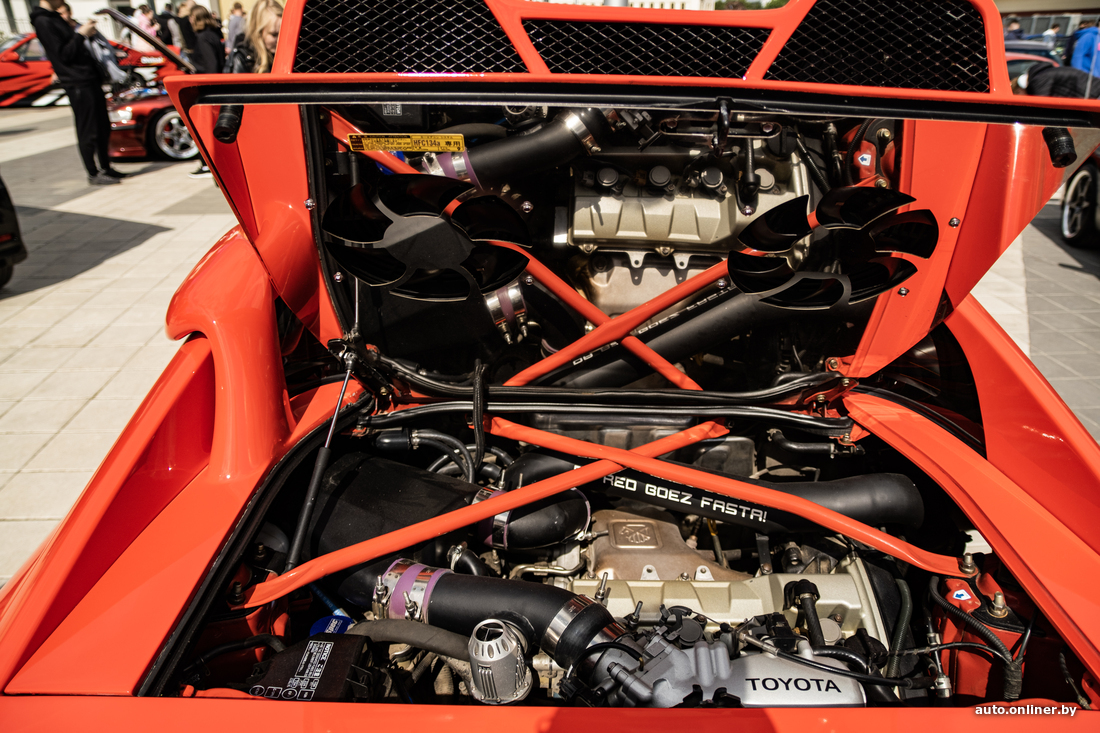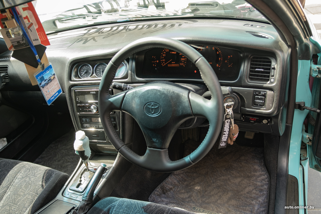 — Это второе поколение, 1996 г. в., — рассказывает Юрий, приехавший из Смоленска. — Установлен бензиновый турбомотор 3S-GTE объемом 2,0 литра, мощность сейчас — около 300 л. с. Доработана подвеска и тормоза, внешность тоже немного осовременили. Сиденья поменял на Recaro SR-2: они также шли с завода, но изначально здесь стояли другие.