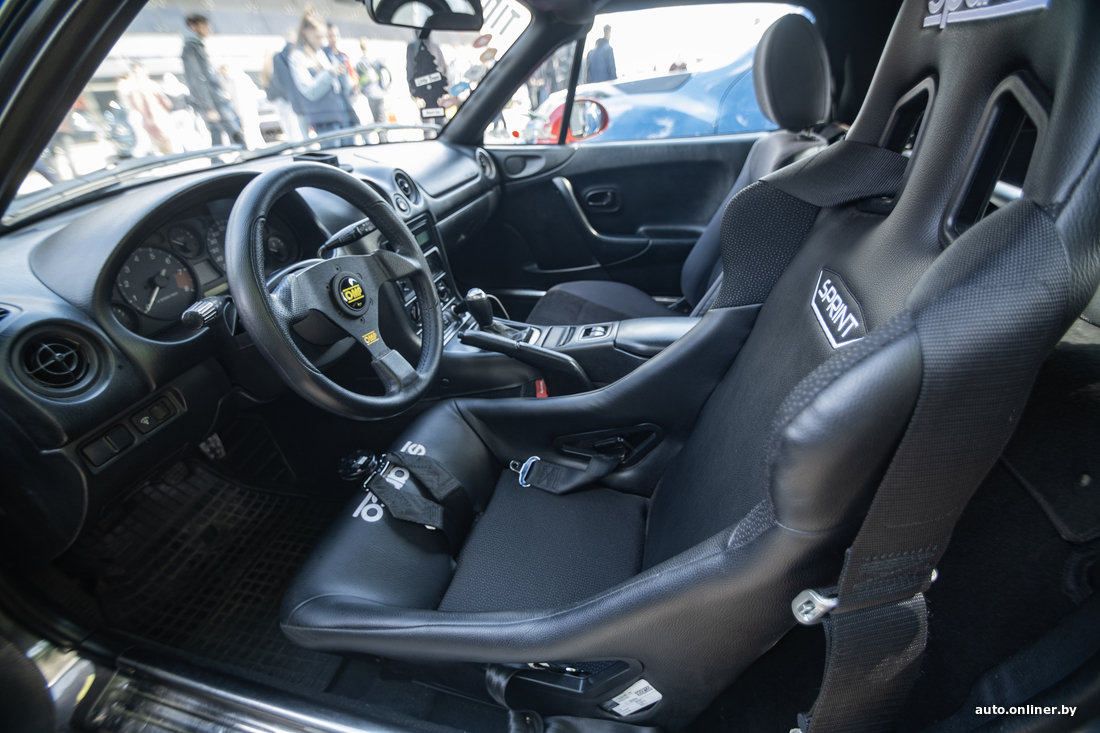 — Мотор не менялся, но «капиталился» — дважды предыдущим владельцем, один раз мной. Можно было бы поставить турбину или компрессоры, но зачем? Ее потенциала для белорусского автоспорта хватает. Наши соревнования по time attack проходят на картинговых трассах, а MX-5 — сама по себе большой картинг. По крайней мере, по ощущениям управляется так же.