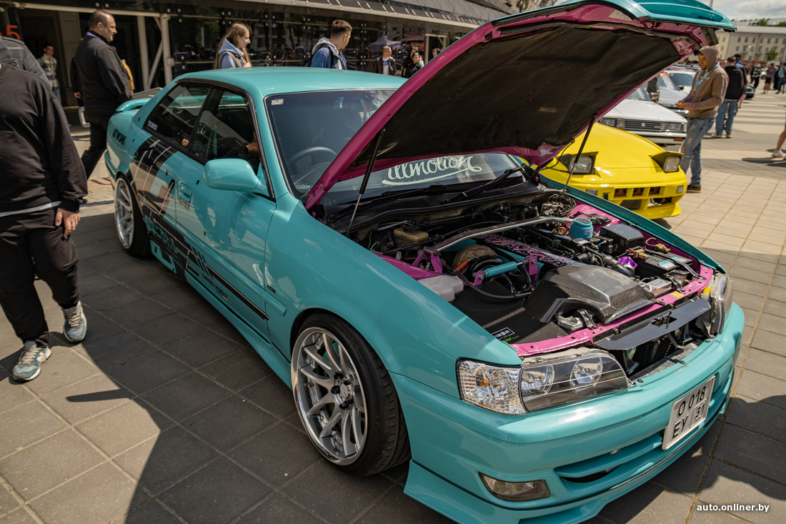 Летних автовечеринок в Минске проходит много, но далеко не все могут с размахом развернуться в центре города, да еще и под боком у «Динамо». Поэтому второй Japlane обещал быть громким (с этой задачей успешно справились хозяева машин, увлеченные автозвуком) и довольно масштабным. Приехало более 100 владельцев разношерстных «япошек». Были и те, кого можно каждый день повстречать в потоке без особого восторга. Некоторые вызывали уважение только потому, что не сгнили за два десятилетия. Но примечательных все же было больше.