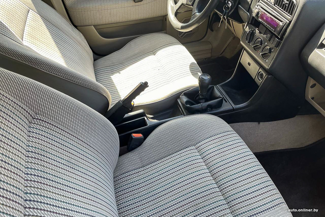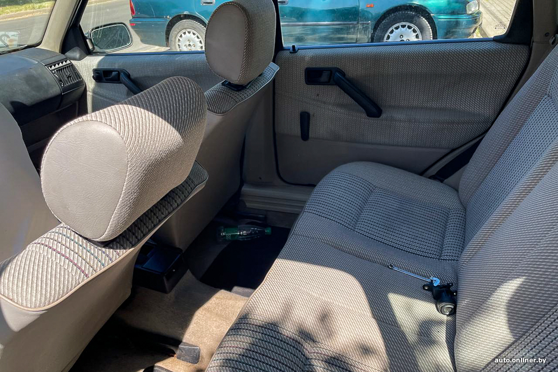 Что по салону? Очень бюджетные чехлы, а под ними довольно целые сиденья, нуждающиеся в легкой чистке. Дверные карты есть, да не все. С ручками — та же история. От центрального замка открывается только водительская дверь, остальные придется распахивать из салона.