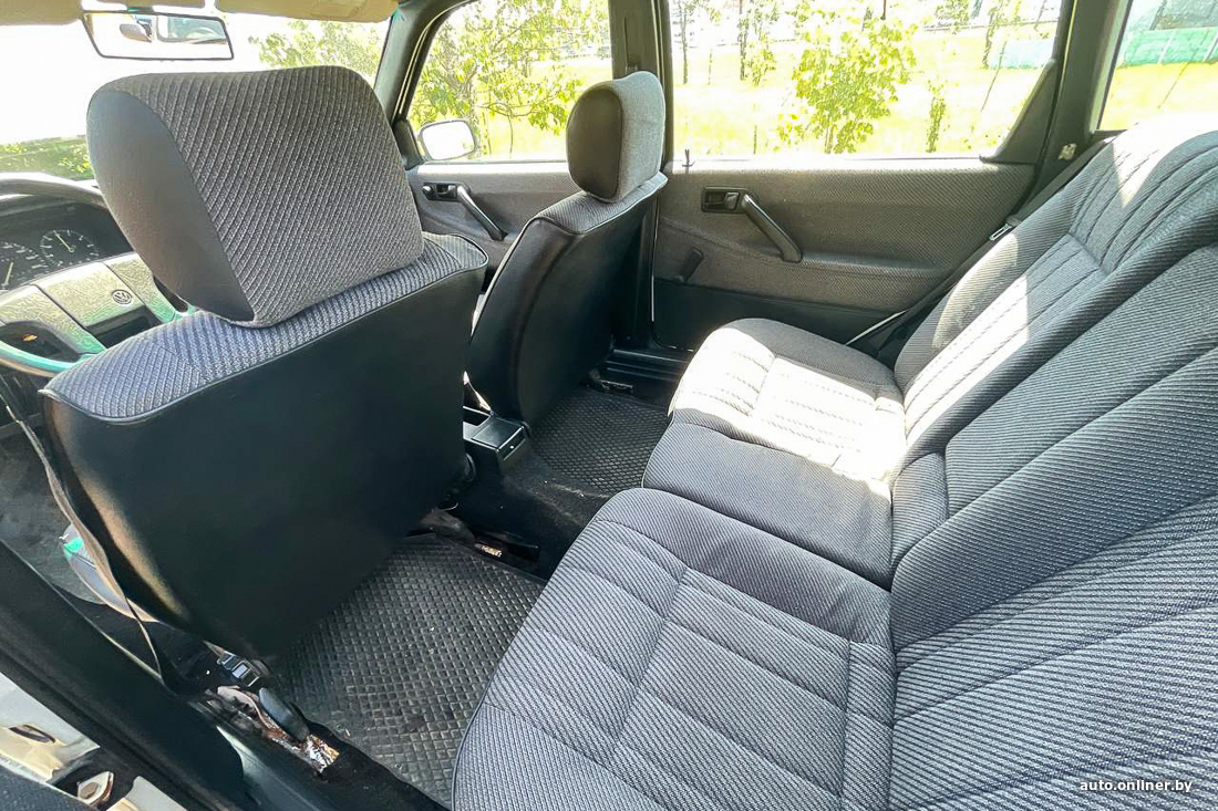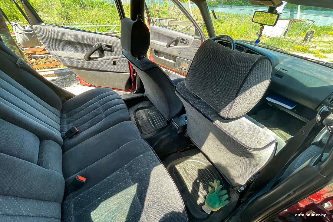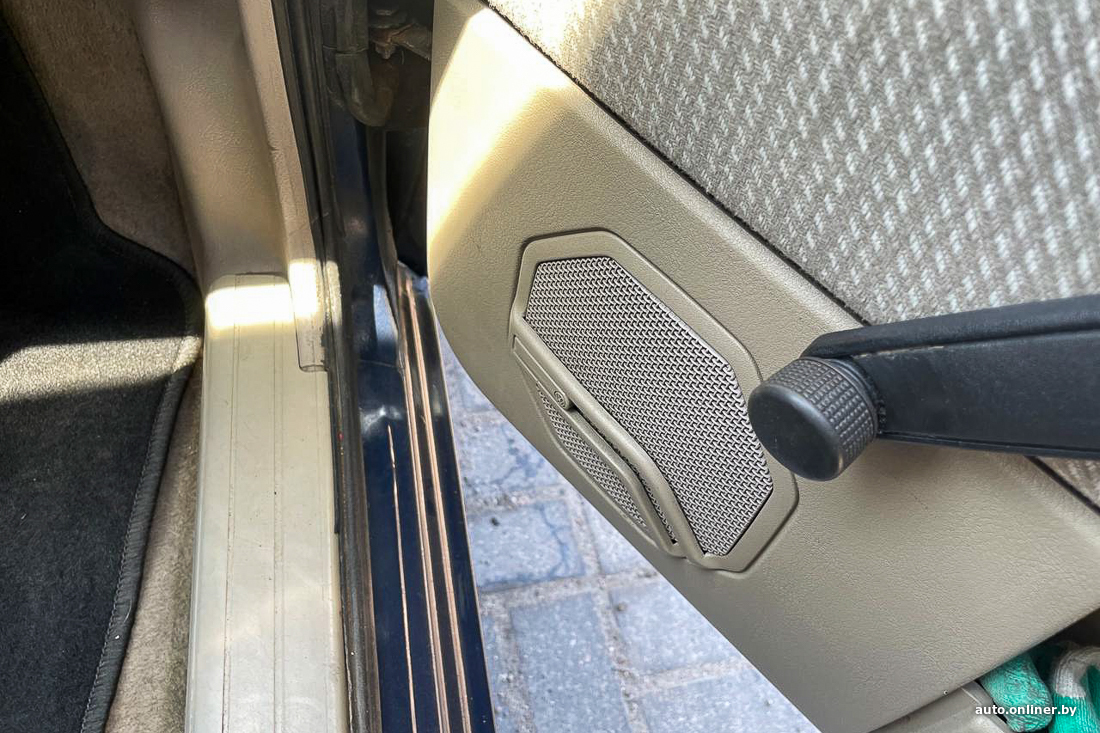 В дверных картах присутствуют отверстия (можно предположить, что сняты заводские «весла»), в сиденьях — единичные дырки, пятна. Задние электростеклоподъемники, со слов владельца, отключены в целях безопасности детей.
