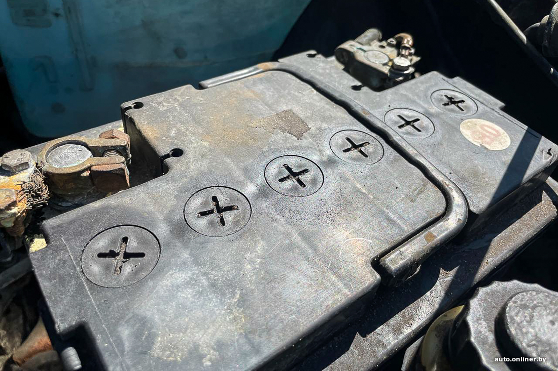 Поднимаем капот. Двигатель подозрительно слишком сухой, а аккумулятор имеет признаки добавления электролита. Не подключена одна тормозная трубка к клапану, автомеханик советует обратить на это внимание. Давайте заводить?