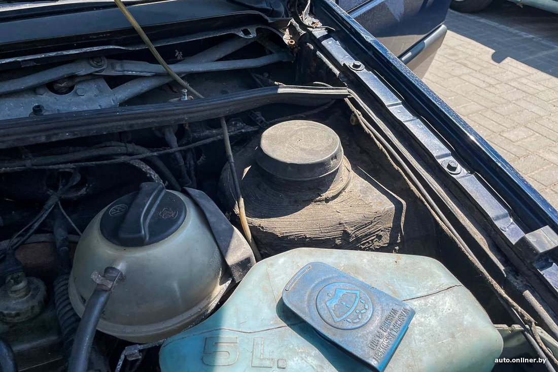 В районе ног заднего пассажира по правой стороне днища есть вмятина — как будто наскочили на препятствие. Нормальное ли в целом состояние? Смотря с чем сравнивать. Для машины 1991 года, может, и нормальное, но много ржавчины: ни обработки, ни герметиков.