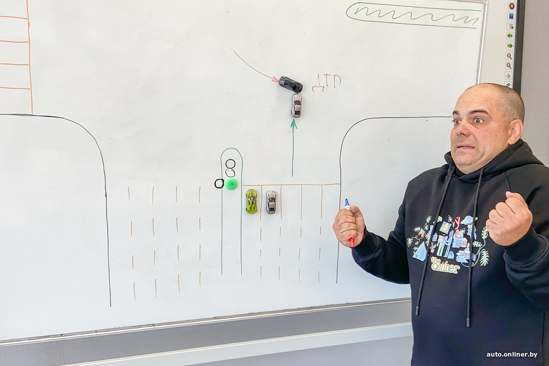 — Раньше был поворот налево из одной полосы, и даже тогда было сложно поворачивать. Теперь поворот сделали из двух полос — станет еще сложнее, опасных ситуаций будет больше. Ты поворачиваешь, у тебя сбоку машина, вы смотрите друг за другом, а навстречу может кто-то ехать — кошмар! — волнуется преподаватель. — У нас ведь полно водителей, которые не понимают, что нельзя на скорости выскакивать на перекресток, если у тебя закрытый обзор. Ну и что, что у тебя зеленый свет: ты на скорости выскочишь, а перед тобой машина повернет — ничего не успеешь сделать.