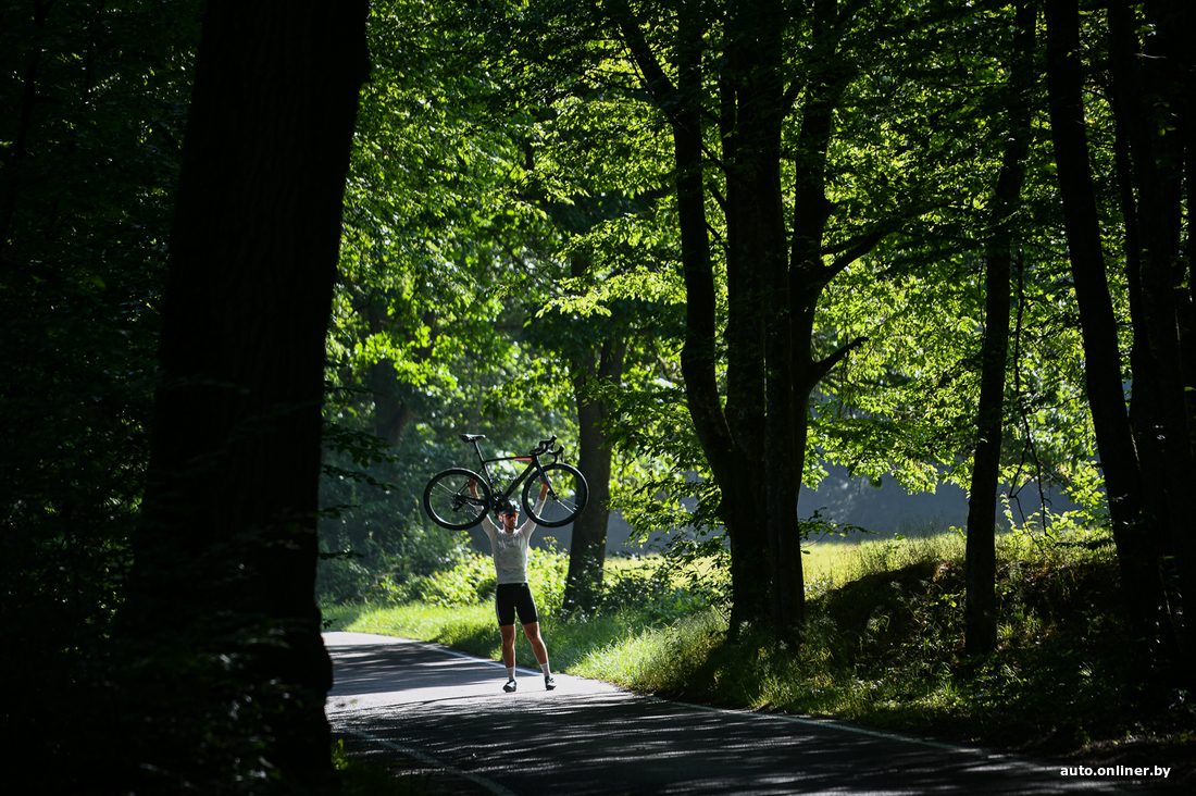 Рано утром мы въехали под зеленые своды Беловежской пущи. В это время здесь слышно только птиц, и мы почти не нарушаем их веселого разговора. Мчимся куда глаза глядят, выбирая маршрут позаковыристее. Дороги здесь идеальные: асфальт гладкий и без единой щербинки, бездорожье ровное и живописное, хоть ночной ливень и старался переиначить его на свой лад. Транспорт у нас самый подходящий — велосипеды. Шоссейник и гравел: прокатимся на одном и на другом, поговорим о характеристиках и особенностях, сравним колесом к колесу.