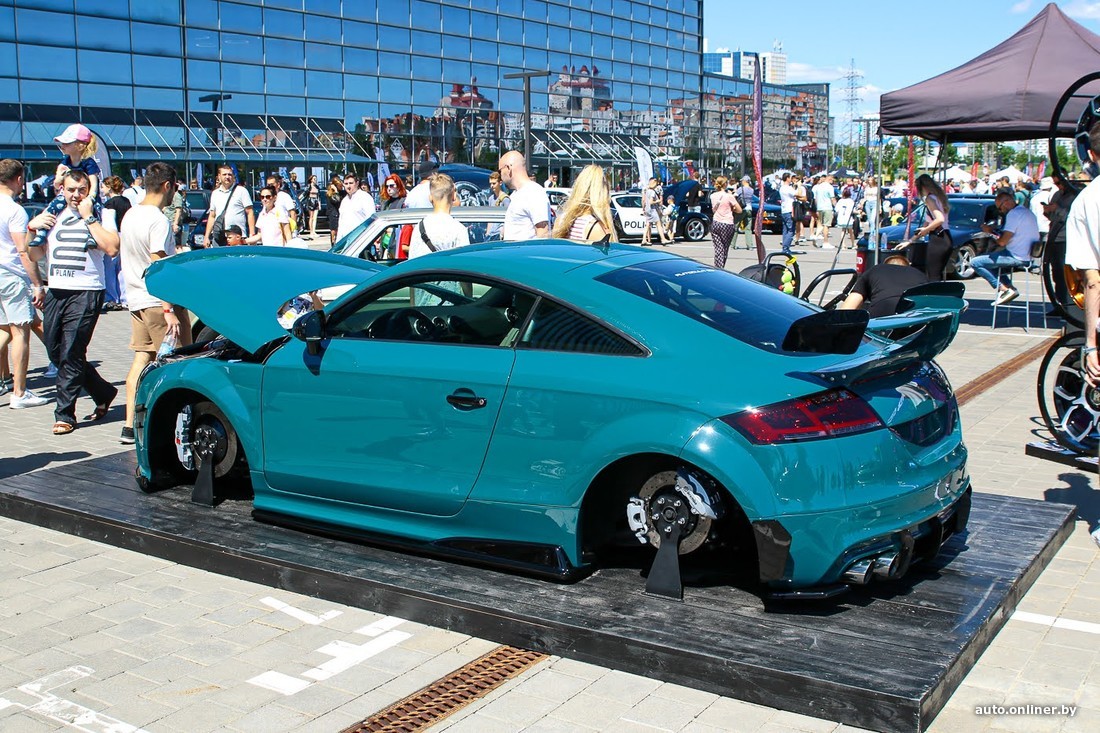 Экспозиция и впрямь получилась что надо: любой ценитель найдет свою тему. Есть и ретро, и заниженные тачки, и спортивные автомобили, и еще много всего. Приятно, что мероприятие не стало чисто белорусским междусобойчиком, а привлекло участников из России и Латвии.