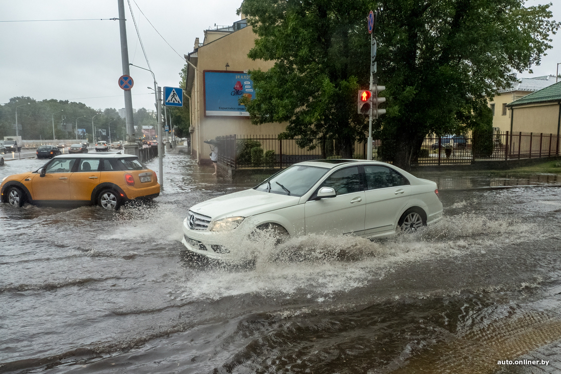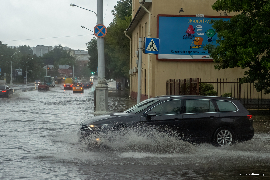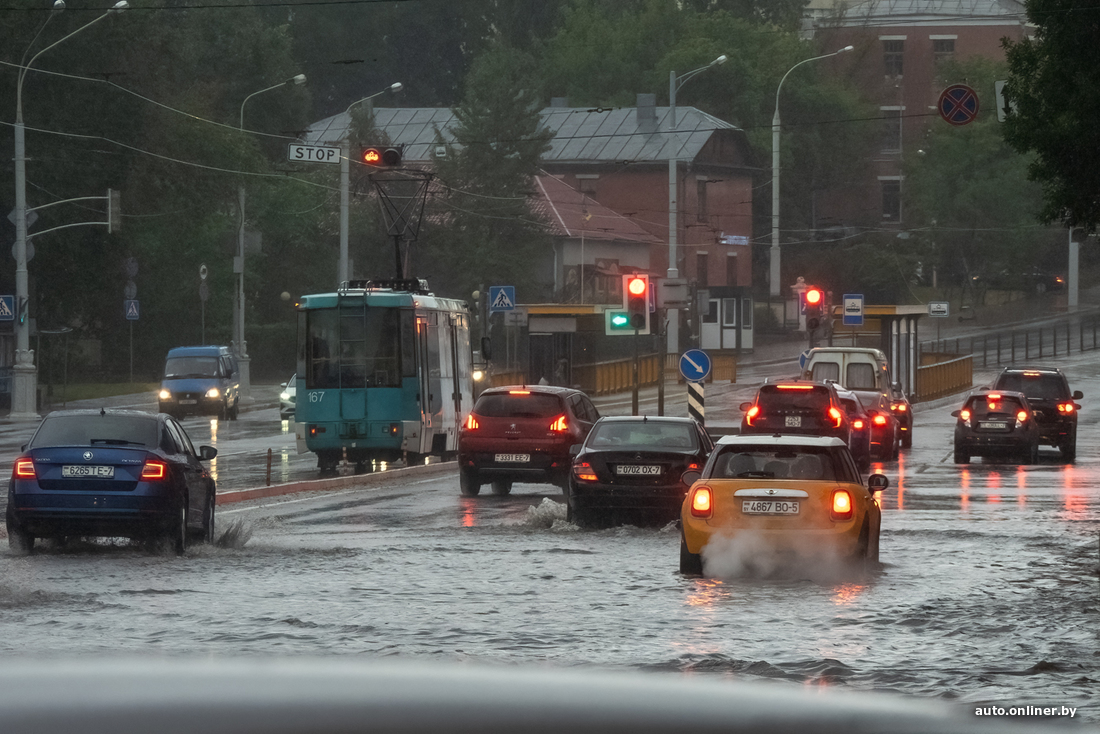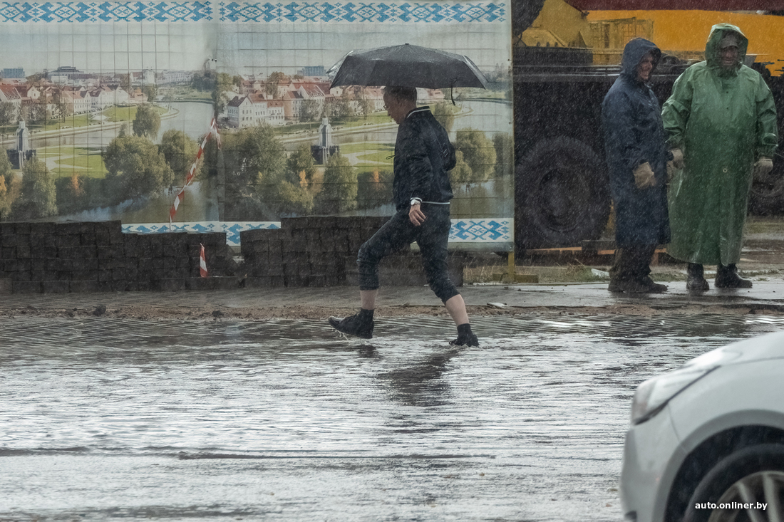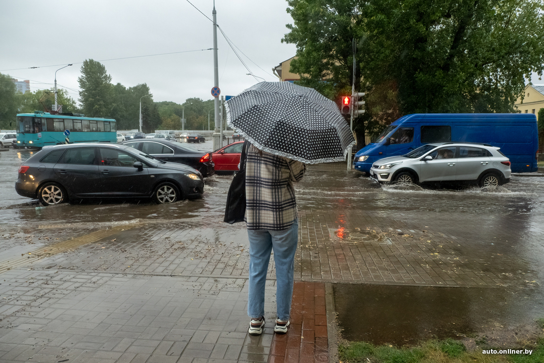 Минск, похоже, накрыло целиком. Льет и в центре, и на окраинах