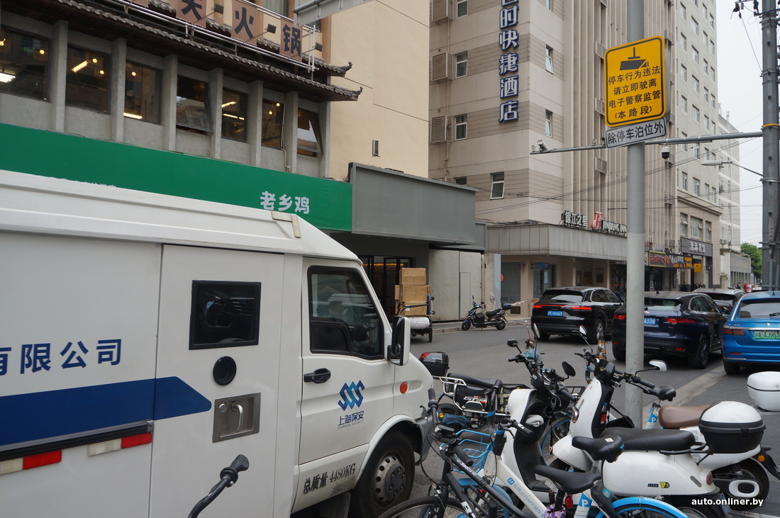 Пожалуй, главное отличие Шанхая от Минска — свободные от машин дворовые кварталы. Все они не имеют сквозных проездов. Доступ в них (даже для пешеходов) — только через шлагбаум, обвешенный камерами. К тому же визитеру необходимо миновать консьержа. Одним словом, просто так к жилым домам не попасть.