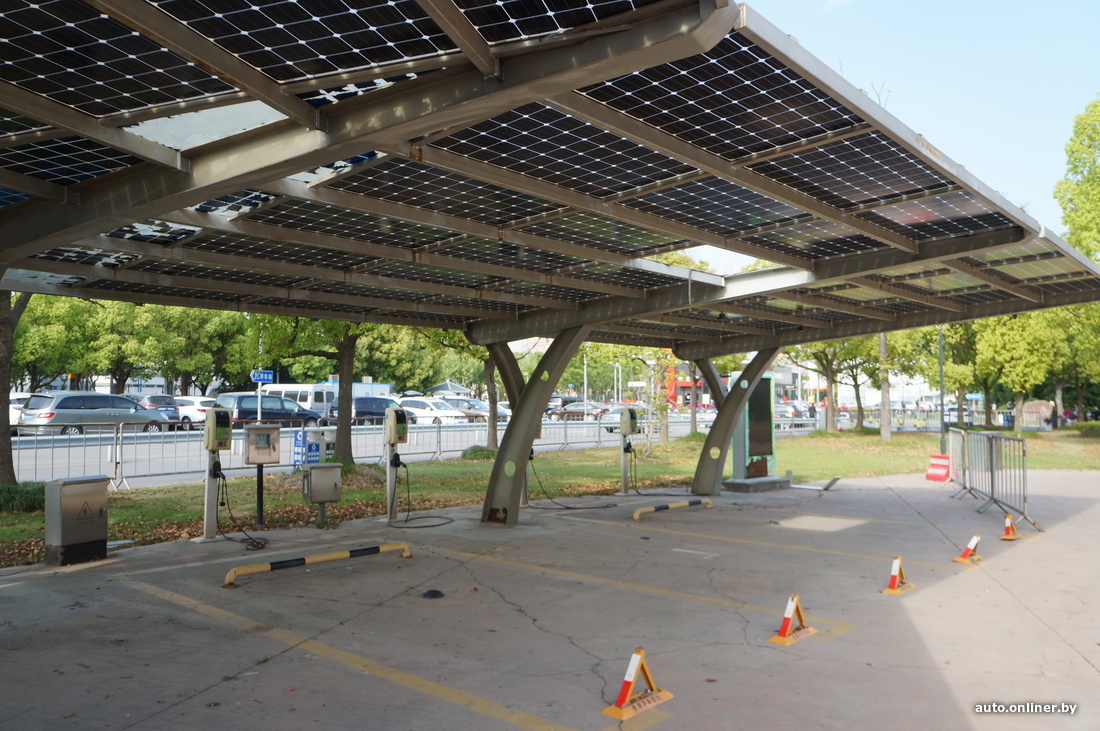 По-особенному устроены плоскостные стоянки для электромобилей. В качестве кровли для навеса тут выступают солнечные панели. Самих же станций — огромное множество. Как брендированных (от автопроизводителей), так и привычных нам «ящиков». Оплата — в основном с помощью телефона, но не через специальное «электрическое» приложение, а через программку, заменяющую кошелек. Дело в том, что в современном Китае наличные деньги и карты не в приоритете. Абсолютное большинство магазинов бумаге и пластику предпочитают мобильные приложения — WeChat и AliPay. То есть платежи проходят с помощью сканирования QR-кода личного кошелька на смартфоне.