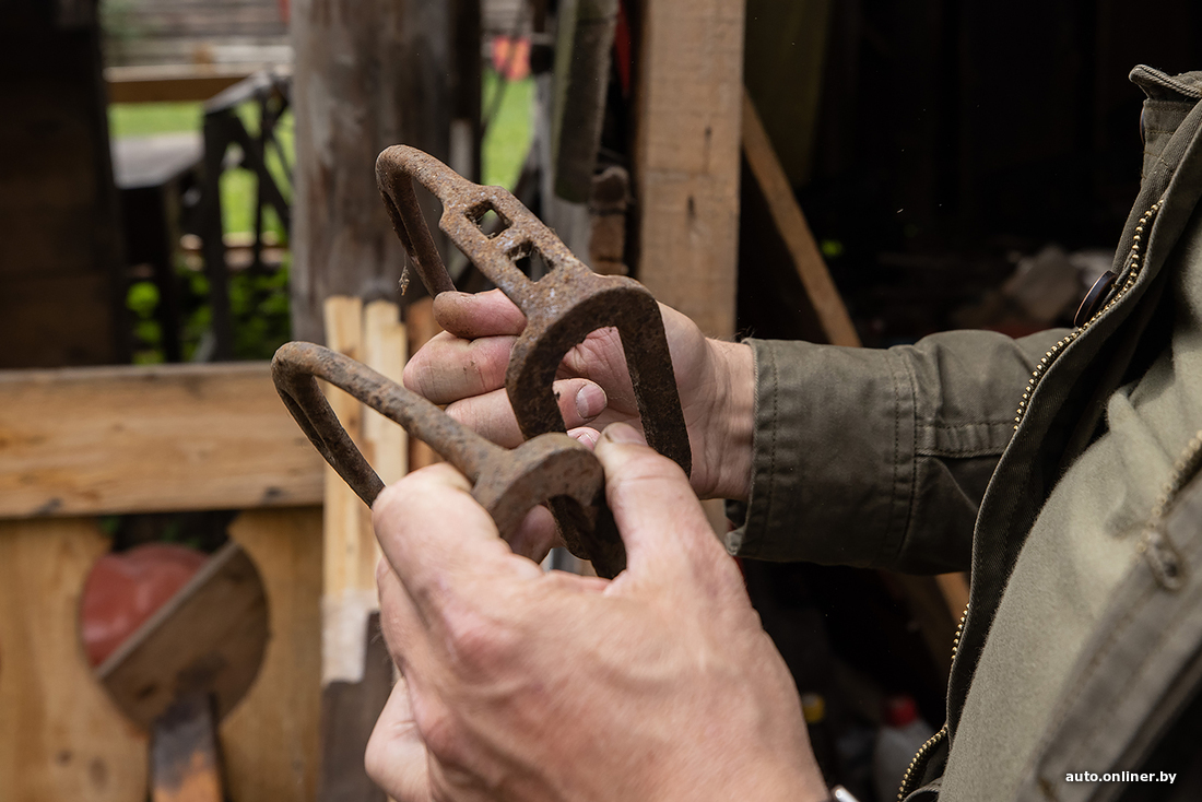 — Мой прадед родом из Крево. Когда он вернулся с Первой мировой, организовал конюшню. Там висели лампы — их я тоже сохранил. А вот половина ножен от сабли или шашки. Найдена в Жодишках — свиньи отца вырыли в хлеву.