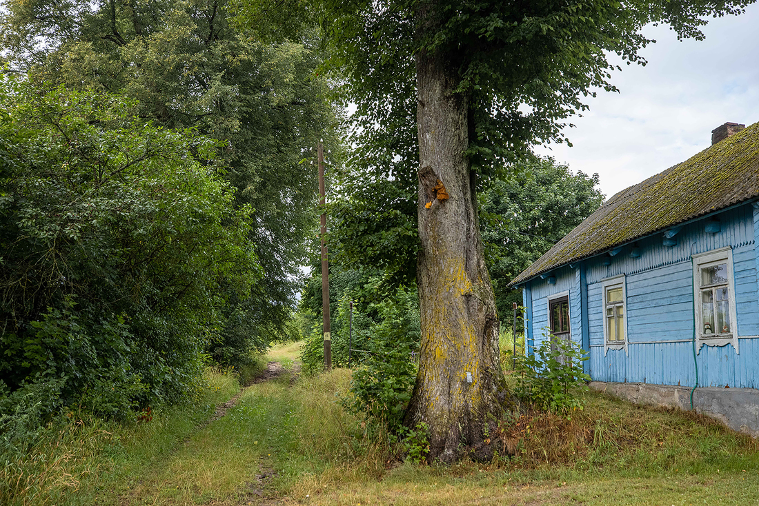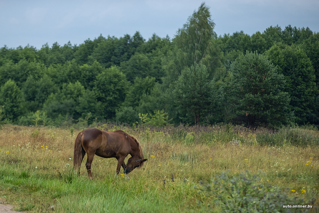 По дороге на первую точку нам пришлось немного поблуждать. «Блуждания» были приятными: всегда интересно сменить городские декорации на деревенские тихие улочки, полюбоваться лошадьми и уютными деревянными домиками. Но вам мы без долгих прелюдий дадим координаты — 54.216260, 26.279325. Вбивайте их в карты и отправляйтесь на нужную точку.