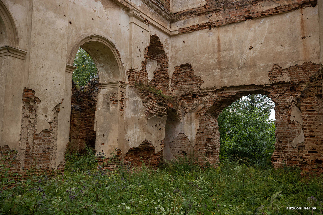 Прощаемся с коллекционером и отправляемся дальше по маршруту — к церкви XVIII века в Новоспасске (54.378745, 26.383285). Изначально она была униатской, позже ее переосвятили в православную. Такой она оставалась до Первой мировой. Но во время войны линия фронта прошла прямо перед святыней.