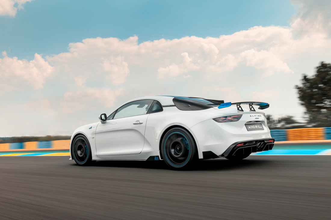К столетию суточного марафона приурочена и специальная версия среднемоторного купе Alpine A110 R. Называется она просто Le Mans, а из отличий от исходной «двухдверки» — характерная окраска кузова, большее число деталей из углепластика (из него, в частности, сделано антикрыло в дополнение к крышке переднего багажника, крыше, диффузору и гоночным «ковшам» Sabelt) и перенастроенная подвеска для лучшей стабильности на скоростных прямых.