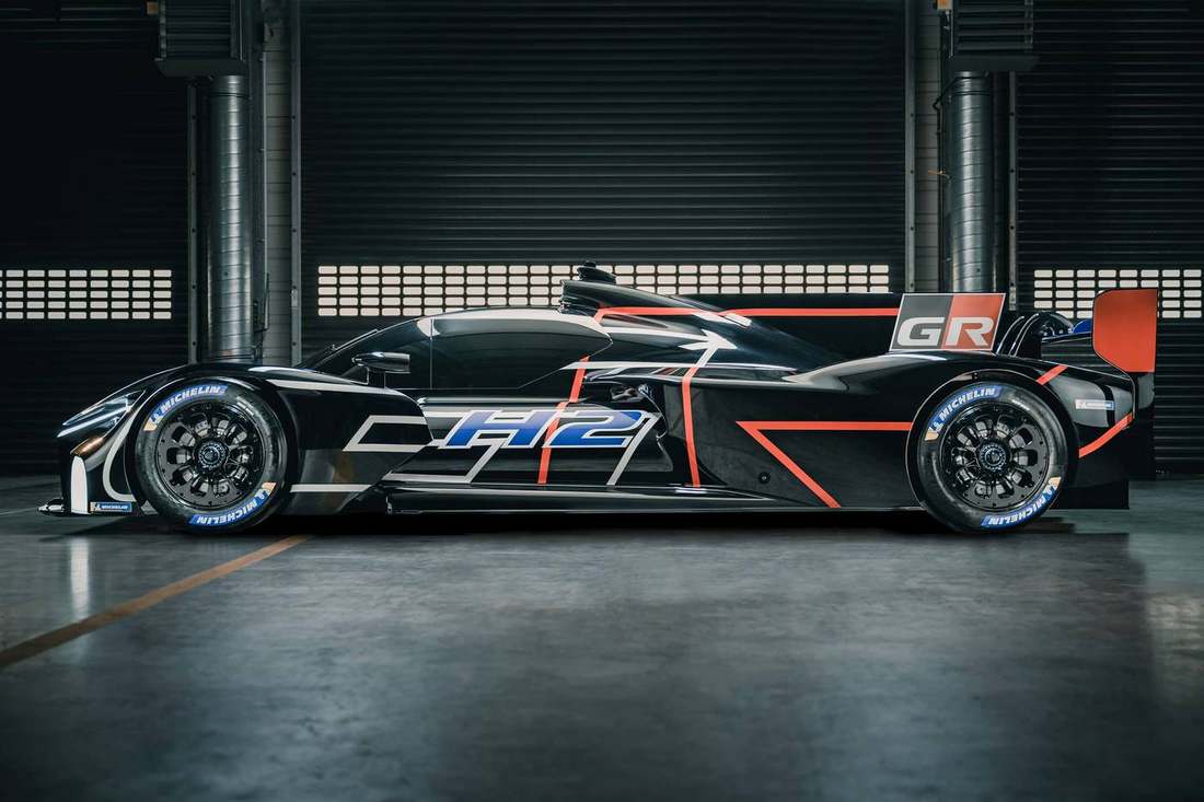 В 2026 году должна появиться отдельная категория спортпрототипов Le Mans H2 с водородными двигателями и силовыми установками на топливных элементах, которые в борьбе за первую строчку в абсолюте составят конкуренцию нынешним гиперкарам. Одну из таких машин готовит Toyota — в Ле-Мане японцы представили прототип GR H2 Racing Concept длиной 5,1 метра и шириной 2,05 метра.