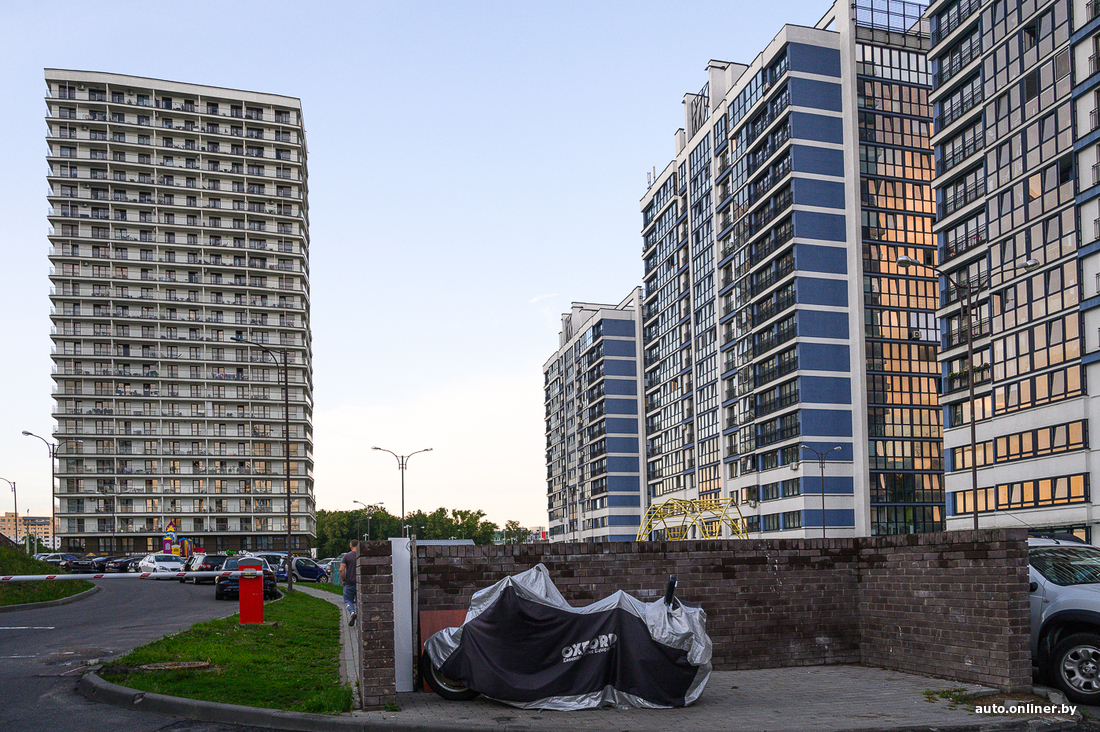 Между зонами — высотные многоэтажные дома. Тут же разместился супермаркет, в некоторых зданиях на первых этажах — закусочные и салоны красоты. Типичный минский «спальник», только с современными фасадами. В старых районах уже несколько привыкли к проблеме с парковкой. Жители столицы надеялись, что при новой застройке ее удастся избежать — все же известна актуальная статистика автомобилизации. По логике, исходя из этого и стоит строить.