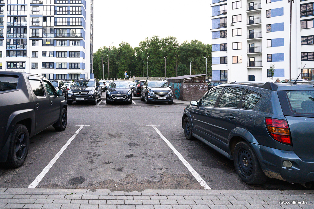 Собственно, вот эти числа: по данным Белстата на май 2023 года, в Минске почти 775 тыс. автомобилей. То есть машина имеется примерно у каждого третьего жителя столицы (всего 1,975 млн человек). Считай, у каждой семьи. Исходя из потребительского подхода, у дома должно быть столько же парковочных мест, сколько и квартир в нем, плюс еще парочка для гостей и курьеров. Но в реальности все иначе.