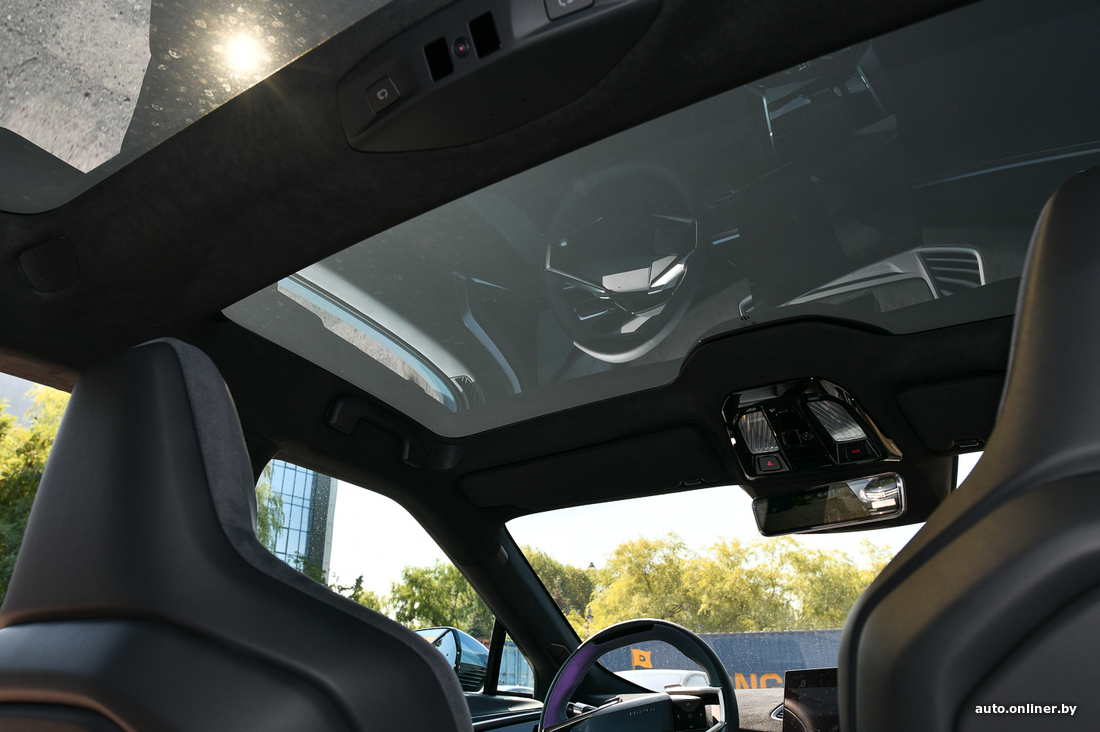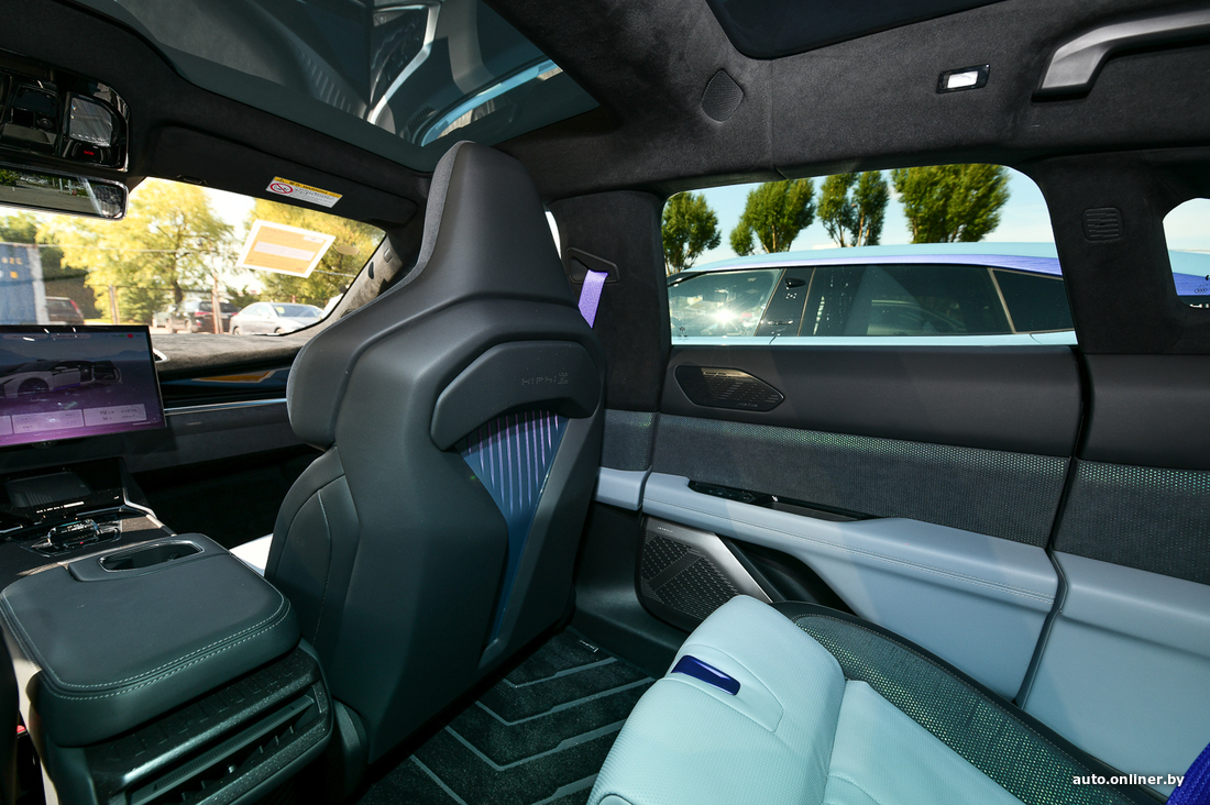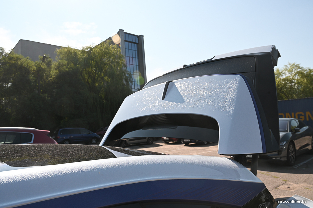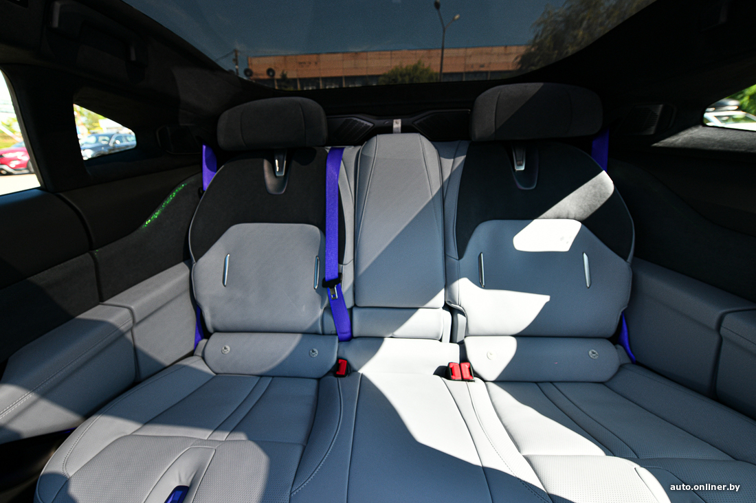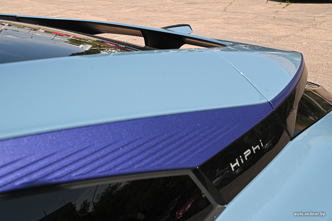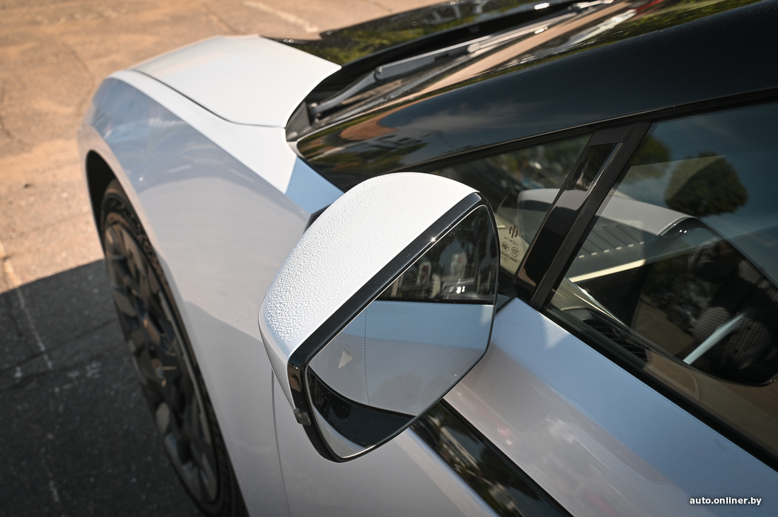 Фишку с открывающимися против хода задними дверями и безрамочными стеклами решили повторить и в этой модели. «Интеллектуальные» двери умеют распознавать людей и сами распахиваются при подходе к автомобилю на соответствующий угол, если рядом есть препятствие. А вот заднего стекла, можно сказать. и нет (скорее это часть панорамной крыши). Салонное зеркало заднего вида — экран, отображающий съемку камеры. Боковые же зеркала — так сказать, аналоговые. Дело в том, что в Китае действует законодательный запрет на замену боковых зеркал на камеры. Зато в крышку багажника встроен выдвижной спойлер, он появляется на свет на скорости выше 80 км/ч.