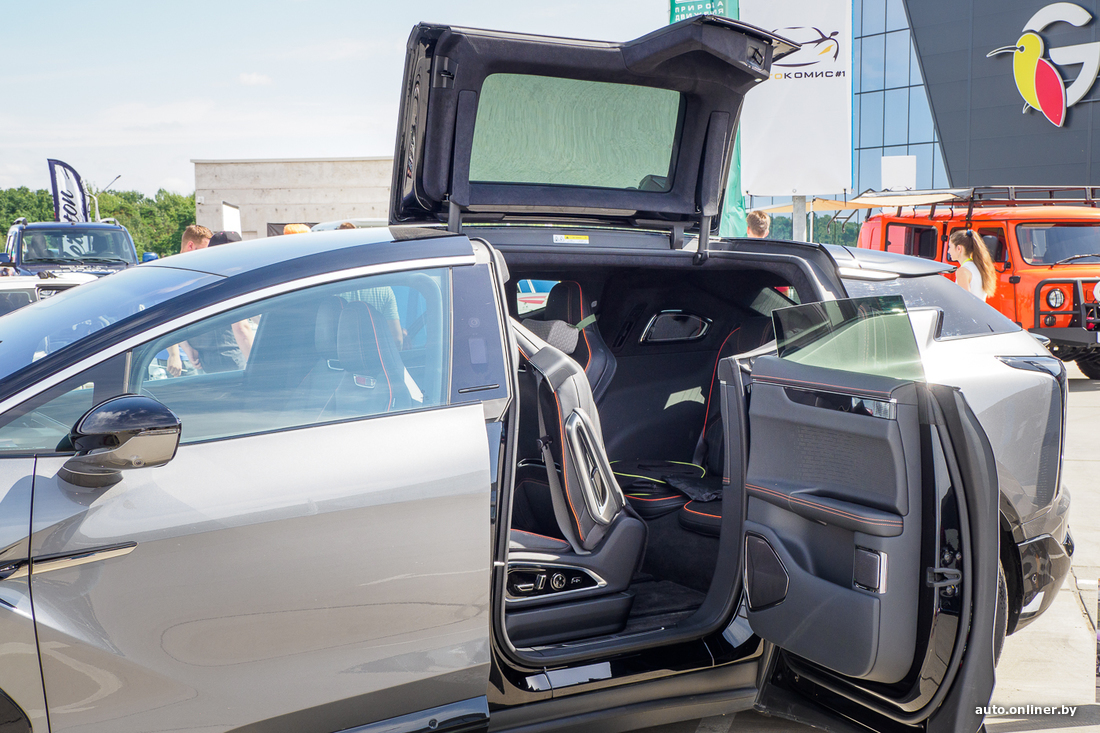 Ну а теперь попробуем сравнить кроссовер с дебютантом на белорусском рынке — электрическим седаном Z. Как несложно заметить, у него не менее, а даже более футуристичный дизайн. Стремительный, эпатажный, выпендрежный. Такую машину не пропустишь взглядом в потоке.