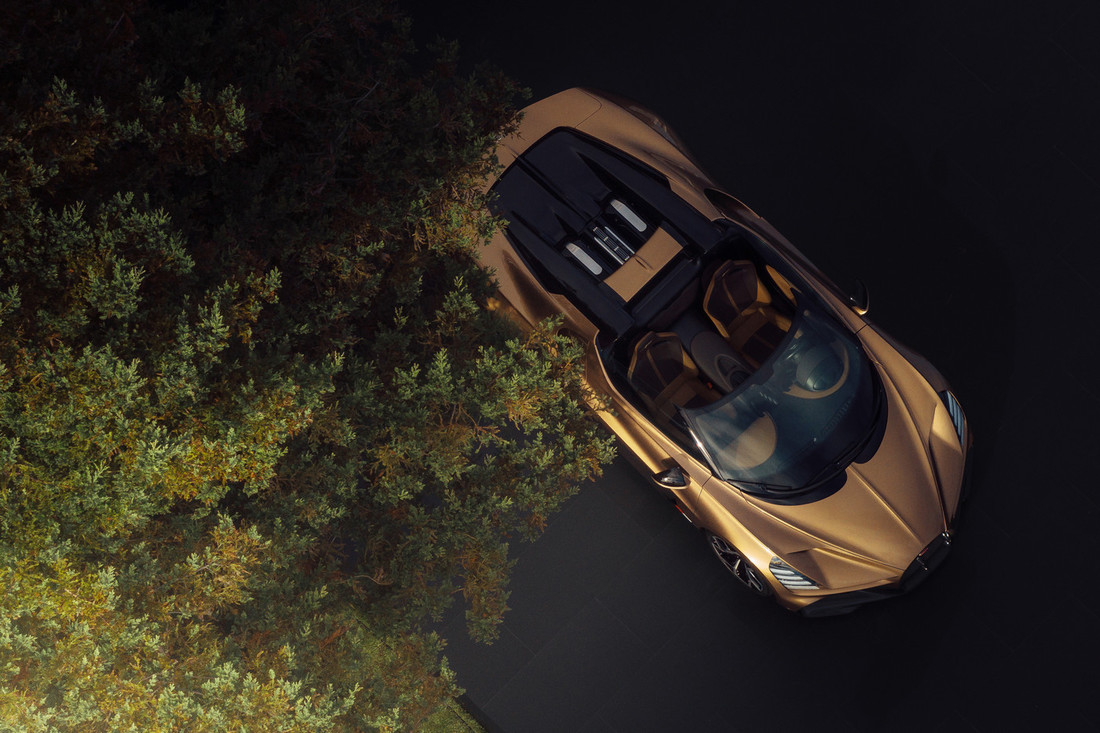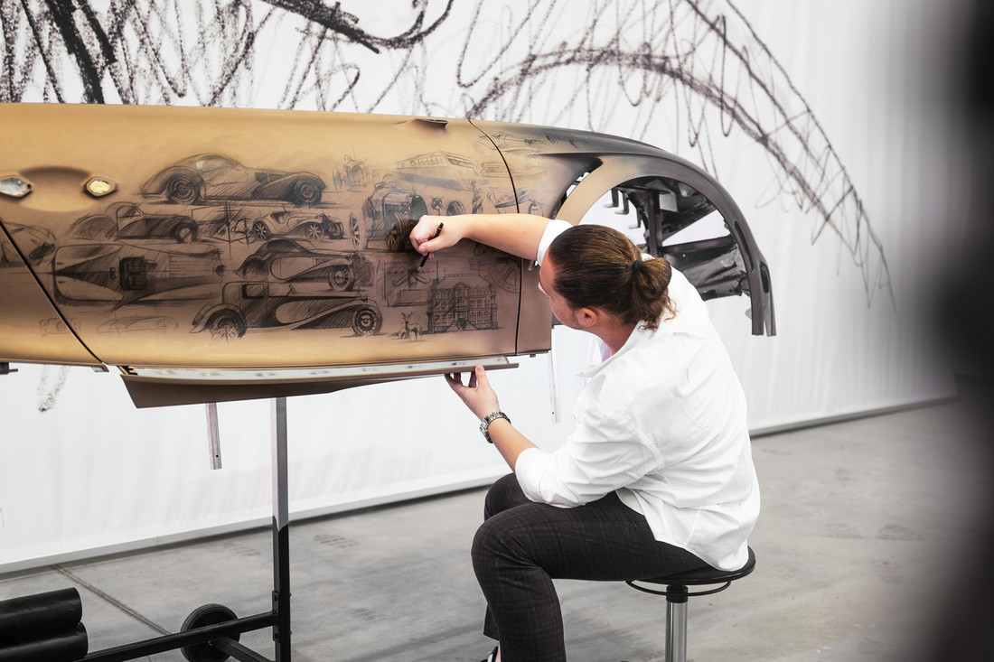 Оба гиперкара получили золотистую окраску, а кузов и интерьер Chiron Super Sport Golden Era вдобавок приукрасили 45 нанесенными вручную эскизами моделей Bugatti прошлых лет и из новейшей истории марки.