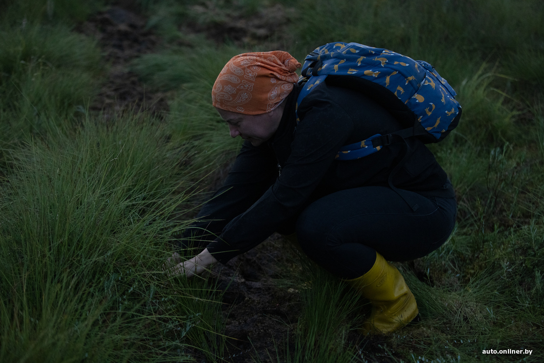Марш-бросок по болоту — это вам не легкая утренняя зарядка под видео фитоняшек из YouTube. Сапоги то и дело уходят под «зыбучие мхи». Точнее, под сфагнум. Главная отличительная черта такой разновидности (вообще, это целый род) мха в том, что он, как губка, впитывает и удерживает влагу. Ольга демонстративно отрывает кусочек и отжимает его на камеру.