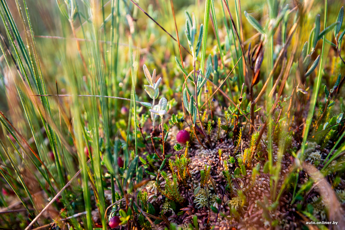 Мы не перестаем любоваться лилово-оранжевым небом, но параллельно внимательно смотрим под ноги — там тоже свой мир. Вот росянка, на волосках которой, как роса, переливаются капельки липкого «нектара», что должен привлечь обед — разных мушек и других насекомых.
