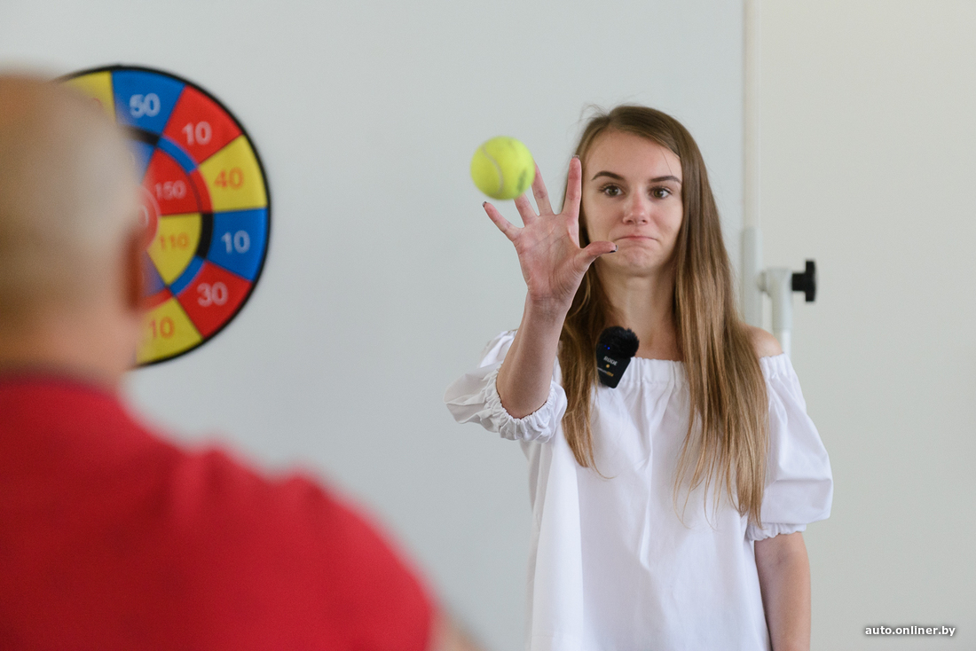 Испытания вполне стандартные: с закрытыми глазами дотронуться пальцем до кончика носа, поймать падающую ручку, поймать летящий в тебя теннисный мяч. Ошибки были у всех, хотя нельзя сказать, что кто-то откровенно провалился с выполнением заданий.