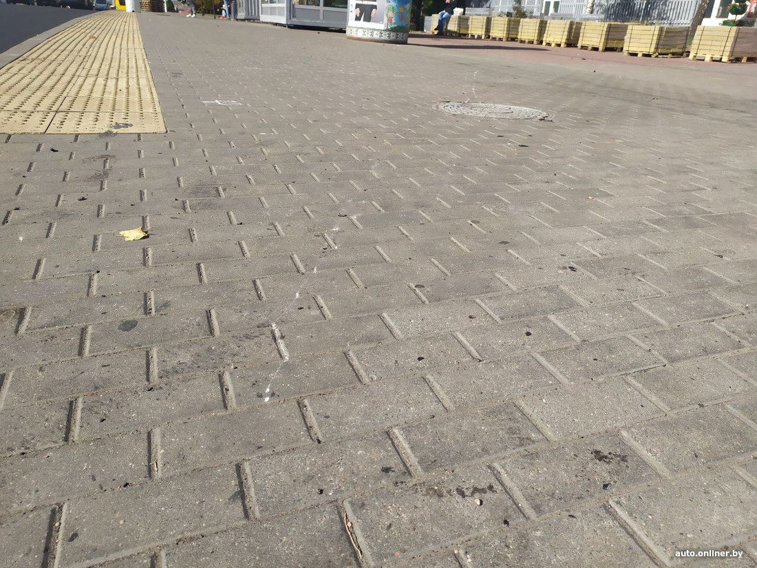 На следующий день на тротуаре сохранились явные следы царапин, оставленные вылетевшим с дороги байком. Место столкновения также легко заметить — прямо на пешеходном переходе.