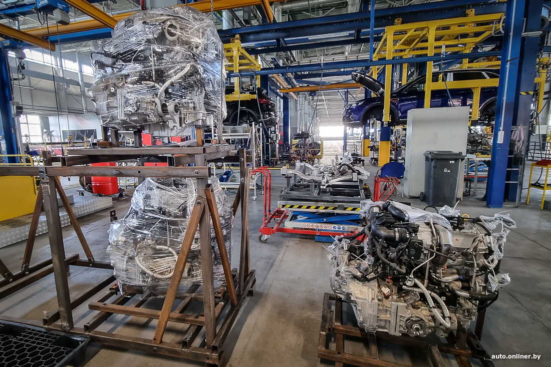 На завод приходит разобранный машинокомплект для крупноузловой сборки. Салон готов, кузов собран, электроника в сборе (на мультимедиа и интерфейс уже установлена прошивка на русском языке). Для того чтобы автомобиль полноценно назывался таковым, не хватает нескольких элементов. Они приезжают в отдельных ящиках. Собственно, навесить их — задача работников «Юнисона».