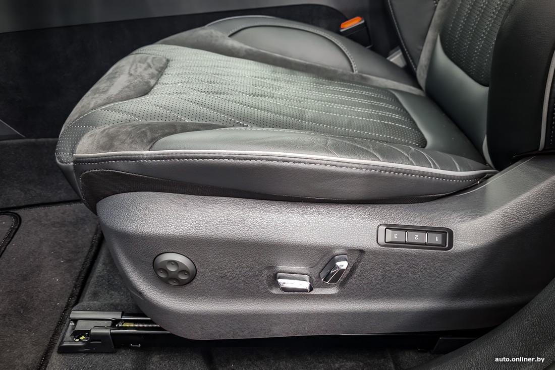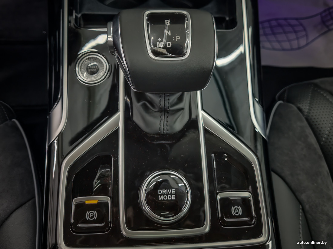 Еще несколько интересных опций: система Start/Stop, бесключевой доступ, помощь при парковке со сканированием параметра, AutoHold, помощь при спуске, пять режимов вождения («Эконом», «Комфорт», «Спорт», «Снег», «Бездорожье»), адаптивный круиз-контроль, автономное экстренное торможение, предупреждение о покидании полосы, о лобовом столкновении, мониторинг слепых зон, проекция на лобовое стекло, беспроводная зарядка, электронный ручник, ABS, ESP, гидравлический усилитель тормозов. Отдельно выделяют системы безопасности: защиту пешеходов, ГЛОНАСС, автономный GPS.