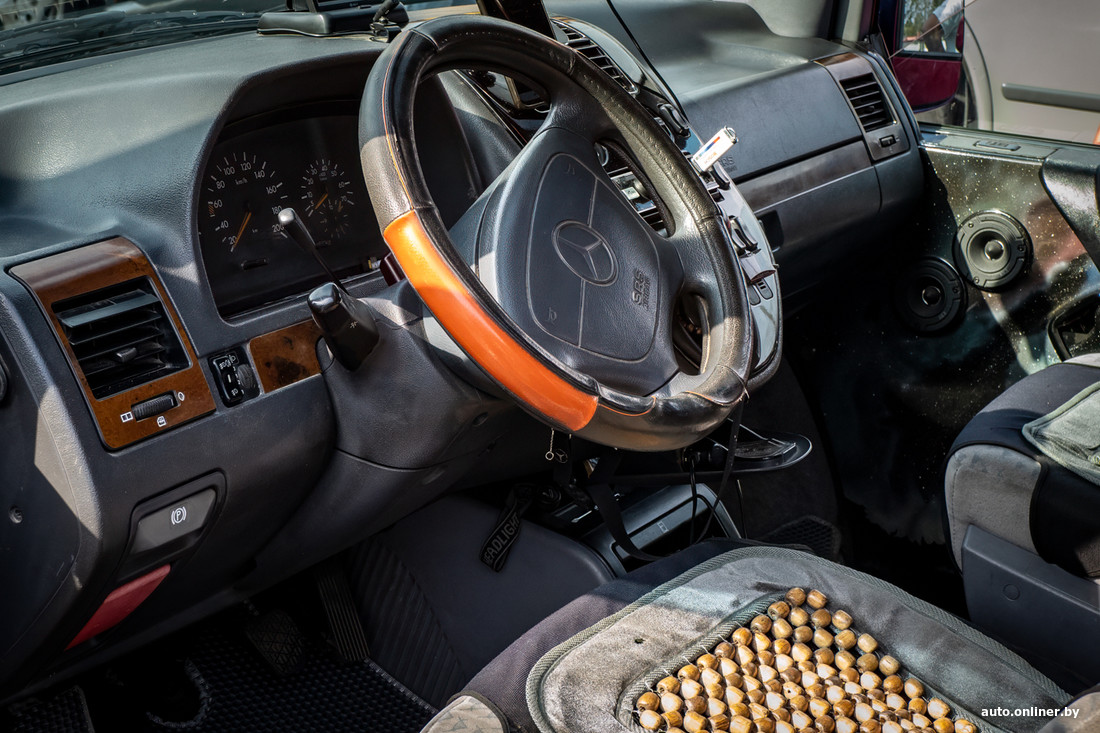 Среди интересных экземпляров — «музыкальный» Vito с 7,5 кВт звука на борту. Был и микроавтобус с редкой комплектацией Westfalia: она предполагает раскладывающийся в кровать задний диван, складной столик и шторки на всех окнах, включая лобовое.