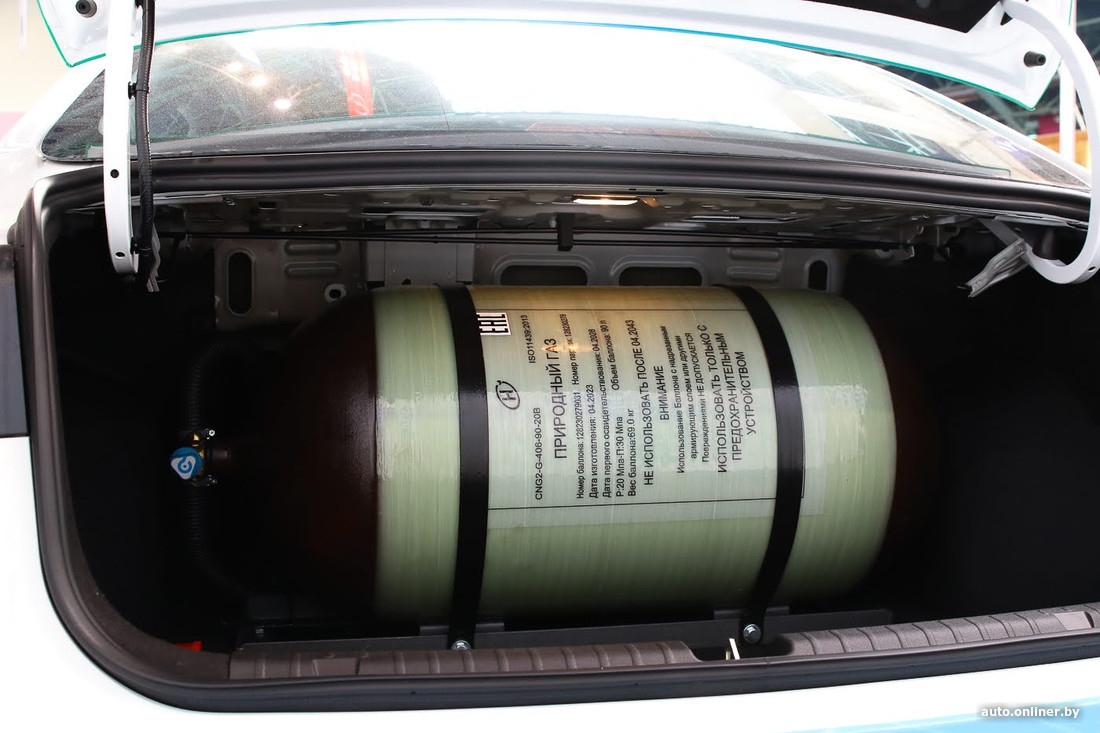В Минске показали Geely Emgrand 7, работающий на метане. О цене и в принципе о машине мало что известно. Автомобиль показали на выставке «АвтоЭкспо», которая в эти дни проходит в Минске. На наклейках на машине указано, что в качестве топлива используется экогаз, который дешевле бензина и дизеля в 2 раза.