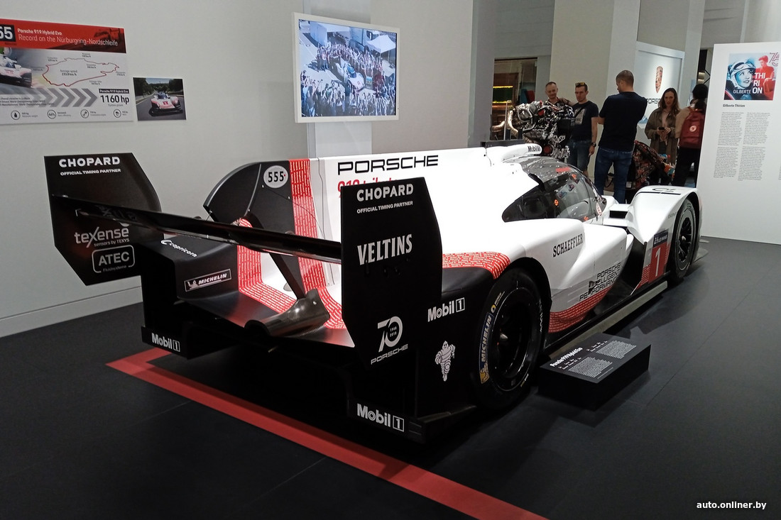 Так, за прототипом 919 Hybrid Evo числится абсолютный рекорд Нюрбургринга: в 2018 году заводской гонщик Porsche Тимо Бернхард за рулем этого болида промчался по трассе за 5 минут и 19,55 секунды. Это весящая 849 кг модификация прототипа класса LMP1, на котором команда Porsche три года подряд побеждала в Ле-Мане (с 2015-й по 2017-й) и завоевывала титулы в чемпионате гонок на выносливость (WEC). Гибридная установка болида включает турбомотор V4 и электродвигатель, развивающие в сумме 1160 л. с.