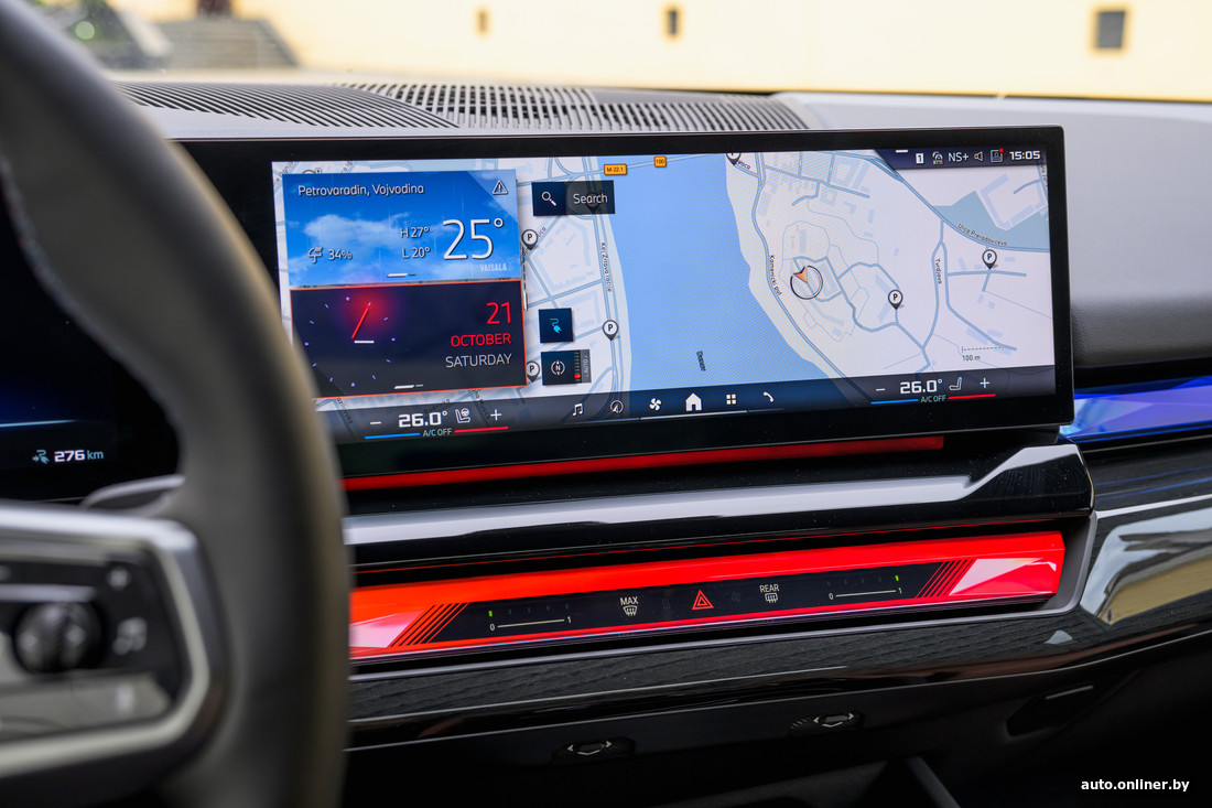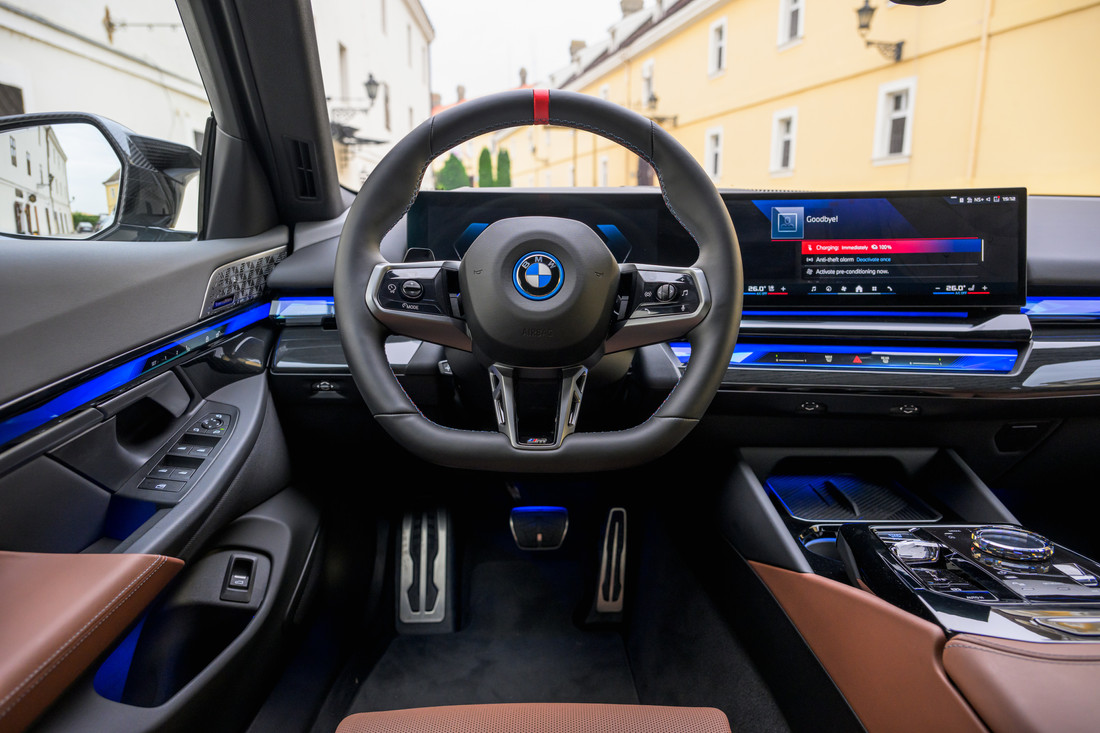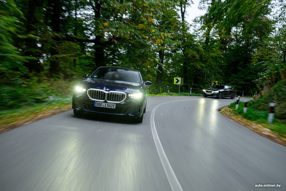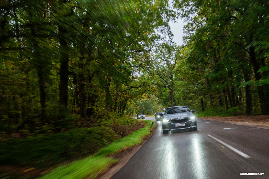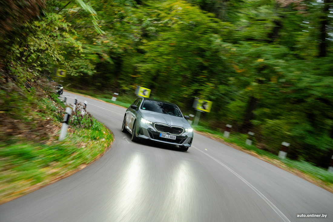 В такие моменты понимаешь, что на некоторых машинах невозможно ездить в спокойном темпе. Как будто за рулем такого авто смотреть на спидометр становится неприличным. Уж не знаю, сколько километров в час показывала приборка, но летели мы бодро. А дорога неизвестная — виляющая двухполоска с повторяющимися подъемами и спусками, разрезающая национальный парк Фрушка-Гора. Да, это Сербия, окрестности города Нови-Сад. Здесь, на незнакомой трассе тестируемый новый BMW i5 под управлением журналистов внезапно ушел в занос — очевидно, слишком резко крутанули руль на очередном повороте. Вышло ярко, эффектно, с визгом шин, пусть этот дрифт и нельзя было назвать запланированным. Все в порядке, ни один пилот, пассажир и даже фотокамера не пострадали: машина спасла. Прочертив характерную пару линий на асфальте, BMW остановилась поперек дороги. В салоне на миг повисла тишина: с застывшими на лицах несколько безумными улыбками мы наслаждаемся адреналиновым послевкусием. «The most amazing driving experience in my life», — прерывает паузу местный видеооператор. И он безапелляционно прав.