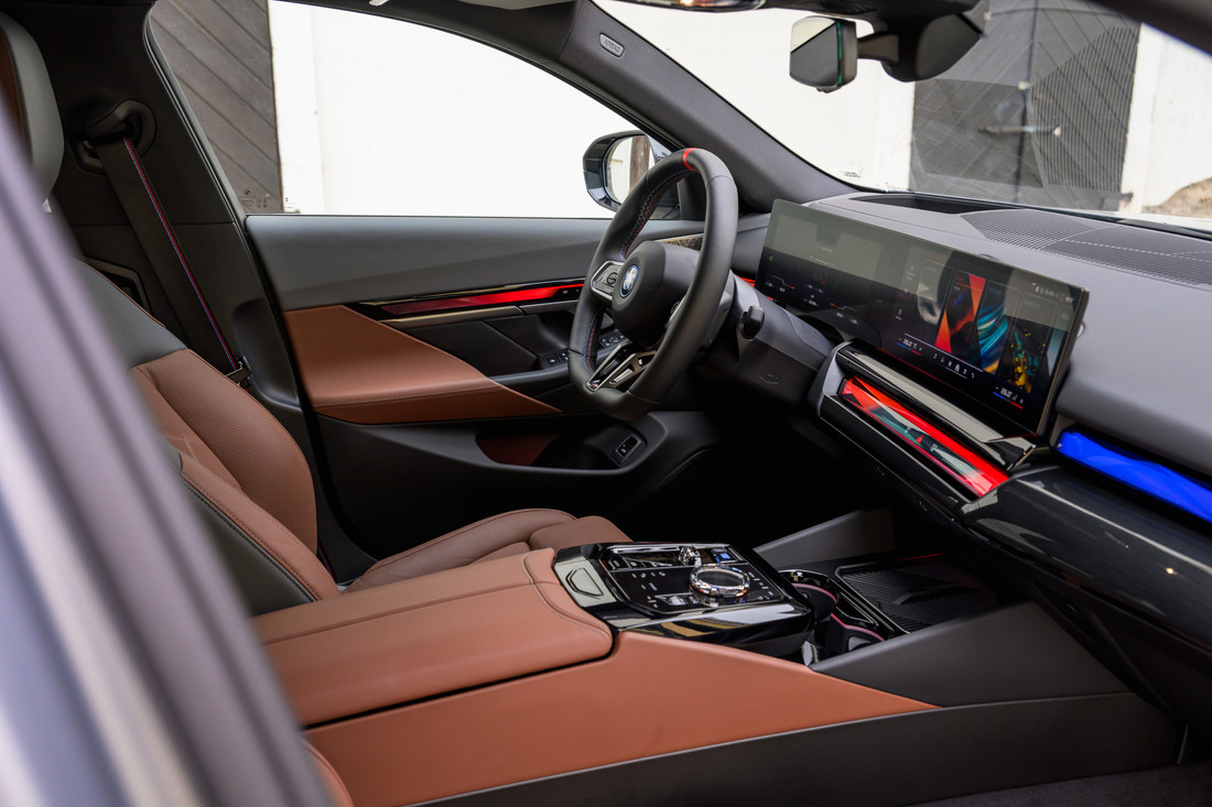 Особое внимание производители заостряют на материалах. Повинуясь экологической стратегии бренда, весь салон в «пятерке» сделали веганским (то есть ни одного элемента животного происхождения). Теперь базовые электрорегулируемые кресла — спортивные, выполнены из так называемого veganza, полученного из тканей кактуса. За «олдами» оставили возможность получить натуральную кожу — но только при заказе отделки BMW Individual Merino за дополнительную плату.