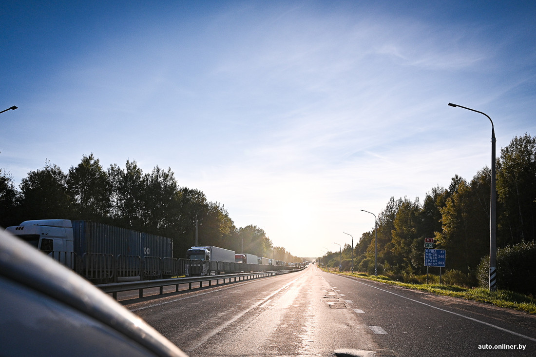 — Кстати, это главное отличие, которое я бы выделил, сравнивая разные части трассы M1: от МКАД-2 до Бреста и до границы с Россией. Когда едешь на запад, то поток плотный: кто-то едет до Бреста, кто-то свернет на Барановичи, Ивацевичи, Березу. А в обратном направлении есть та самая развязка на Оршу или Витебск и как бы все, дальше — на Москву, — занимается географией Краснов.